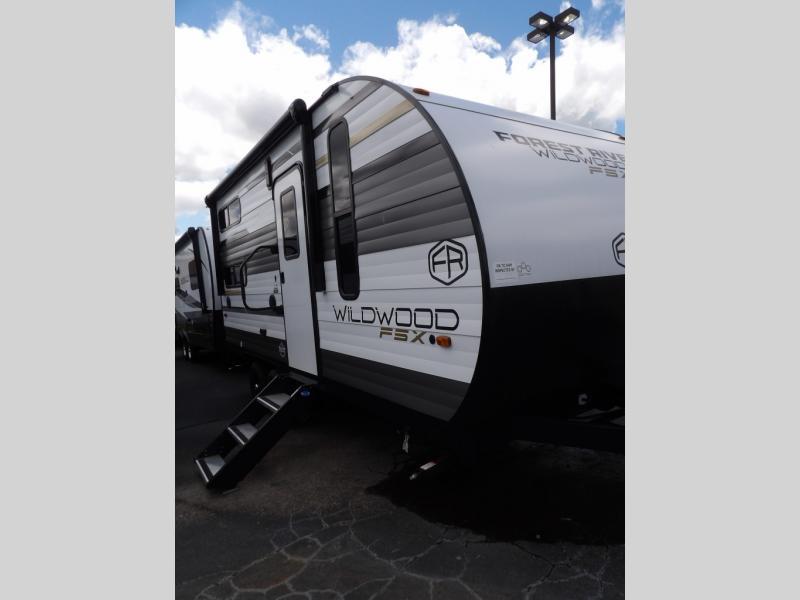 The Forest River Wildwood FSX travel trailer and toy haulers are easy to tow and easy to love, so come take a look! With each model you'll appreciate the 20K BTU furnace and A/C unit to keep you comfortable year around, and the large windows will make the whole unit seem bright and open. The EZ entrance includes an XL folding grab assist handle, and the power awning with LED lights provide an outdoor living space you are sure to love. The lightweight Wildwood FSX travel trailers and toy haulers are your ticket to the great outdoors. Choose yours today!