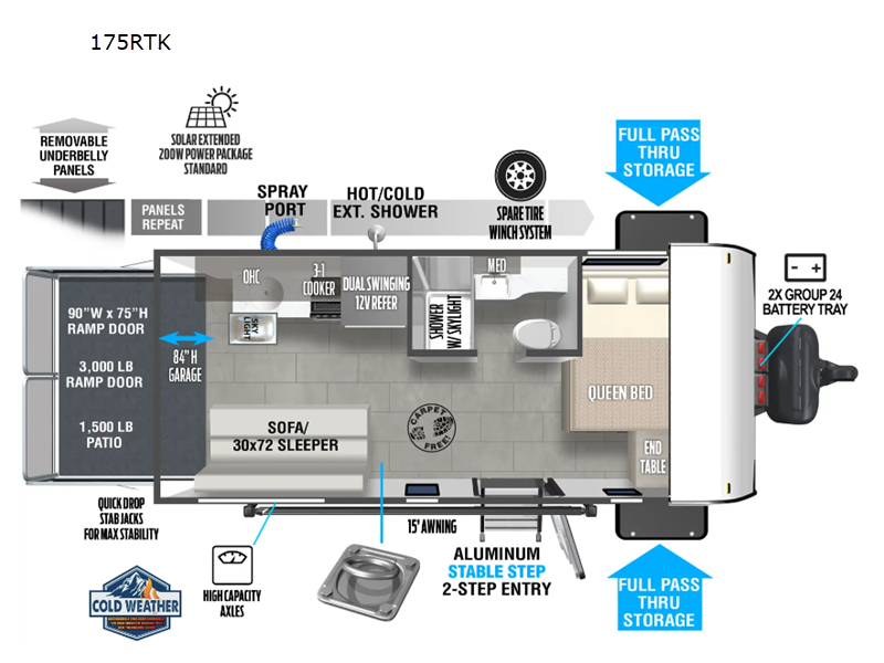 | Awning Info | 15' Power with adjustable legs and LED light strip |