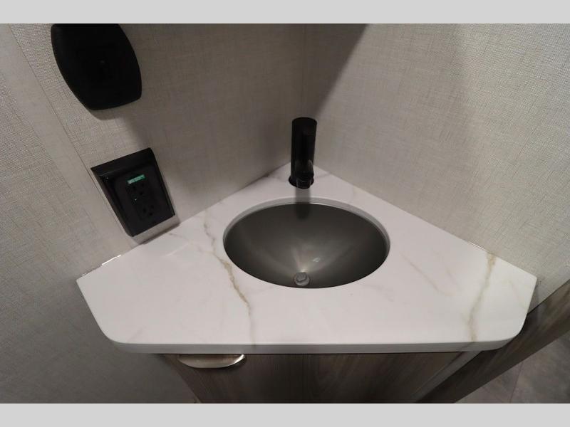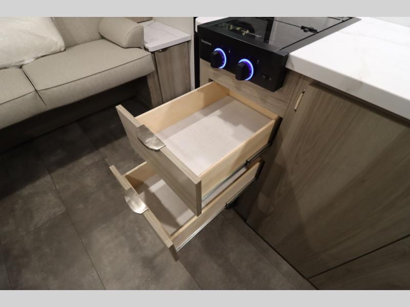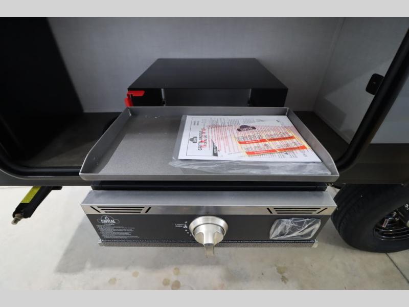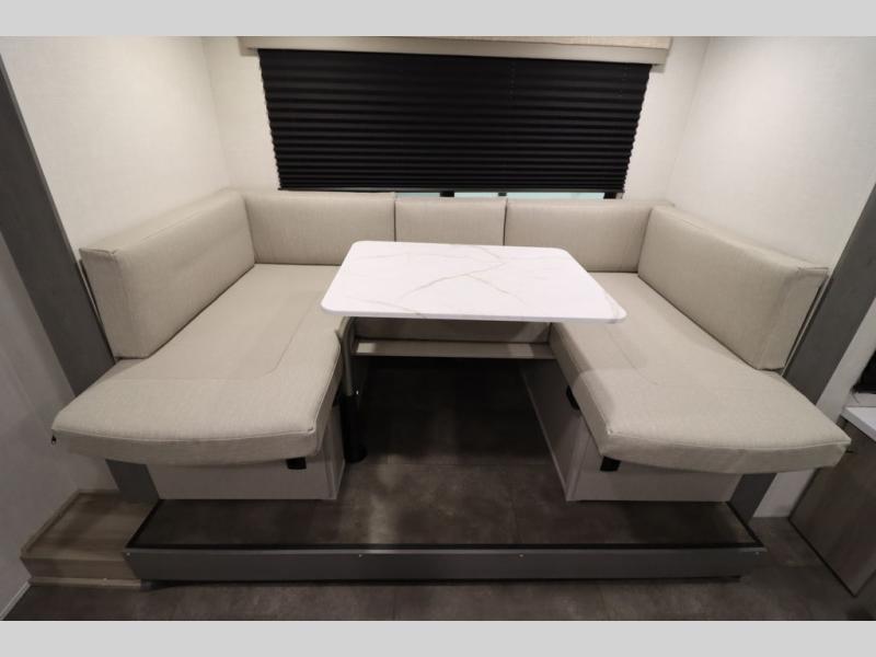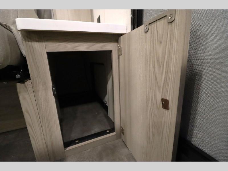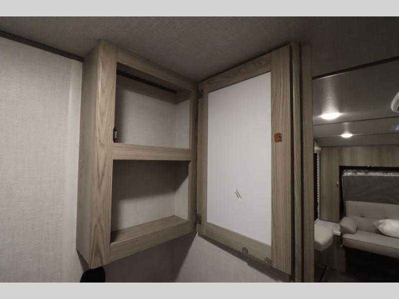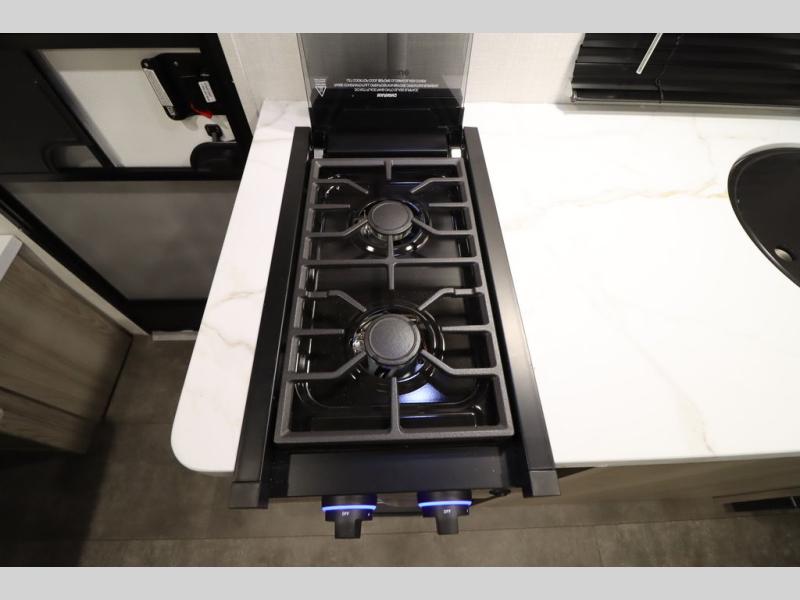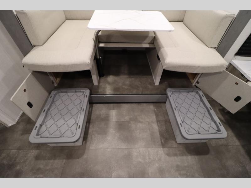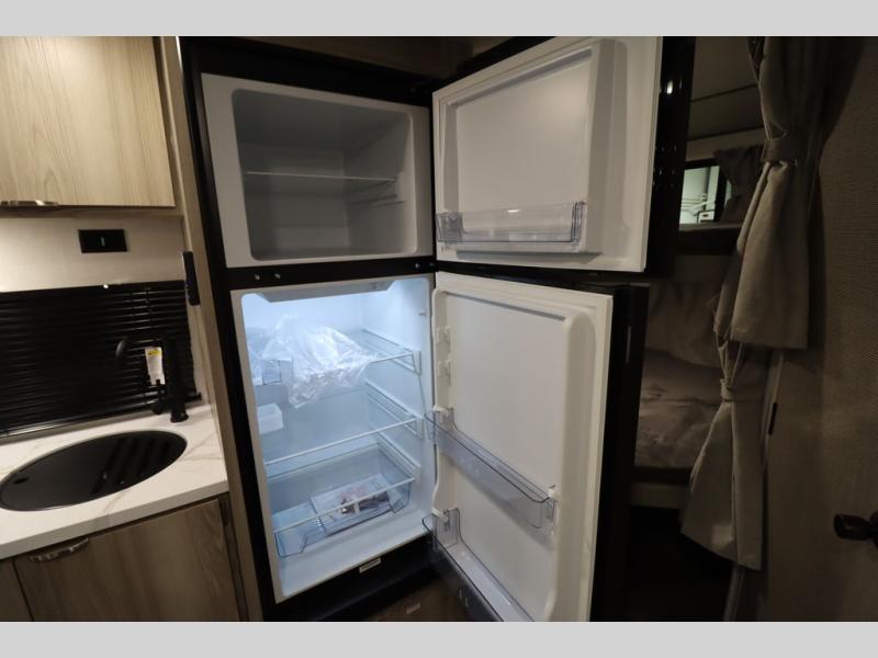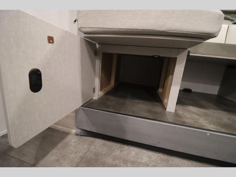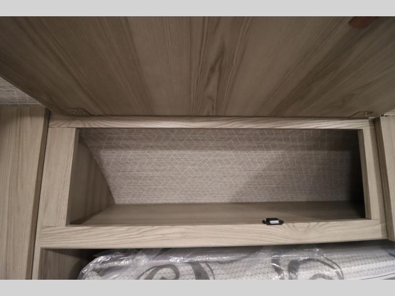 Bring your whole crew along for trips in this roomy travel trailer that can sleep eight people each night. Once you've set up the 14' power awning with LED lights, make lunch on the outside kitchen. Explore some trails or take your fishing poles down to the river, then head back to the trailer to clean up in the full bath. The kids may want to rest on the double-size bunks, while the adults play a game around the U-shaped dinette. This model also includes a sofa plus a Murphy bed that lowers over the sofa when you're ready for bed. Don't let this travel trailer slip away!