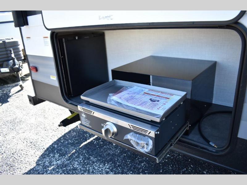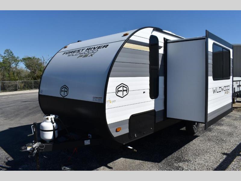 The Forest River Wildwood FSX travel trailer and toy haulers are easy to tow and easy to love, so come take a look! With each model you'll appreciate the 20K BTU furnace and 13,500 BTU A/C to keep you comfortable year around, and the large windows will make the whole unit seem bright and open. The EZ entrance includes an XL folding grab assist handle, and the power awning with LED lights provide an outdoor living space you are sure to love. The lightweight Wildwood FSX travel trailers and toy haulers are your ticket to the great outdoors. Choose yours today!