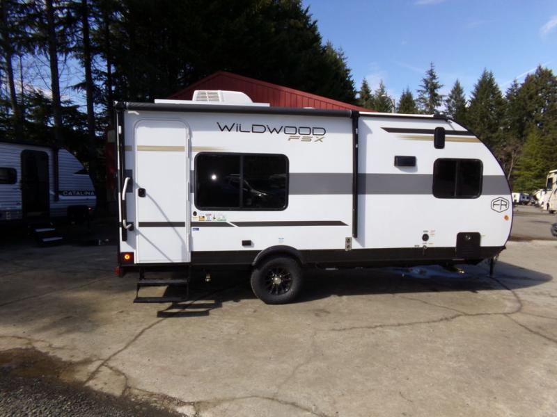 The Forest River Wildwood FSX travel trailer and toy haulers are easy to tow and easy to love, so come take a look! They are constructed with an xtrmPly, one-piece seamless PVC roof membrane, a steel I-beam frame, and diamond plate rock guard for added protection against debris during transport. The Best In Class Value Package includes a power awning with adjustable legs, a USB charging port package, a seamless countertop, and an on-demand tankless water heater with active freeze protection to name a few features. The FSX Family Camping Package includes even more hassle-free features, such a, a 13.5 BTU roof mounted A/C, a power vent fan, stabilizer jacks, and more!