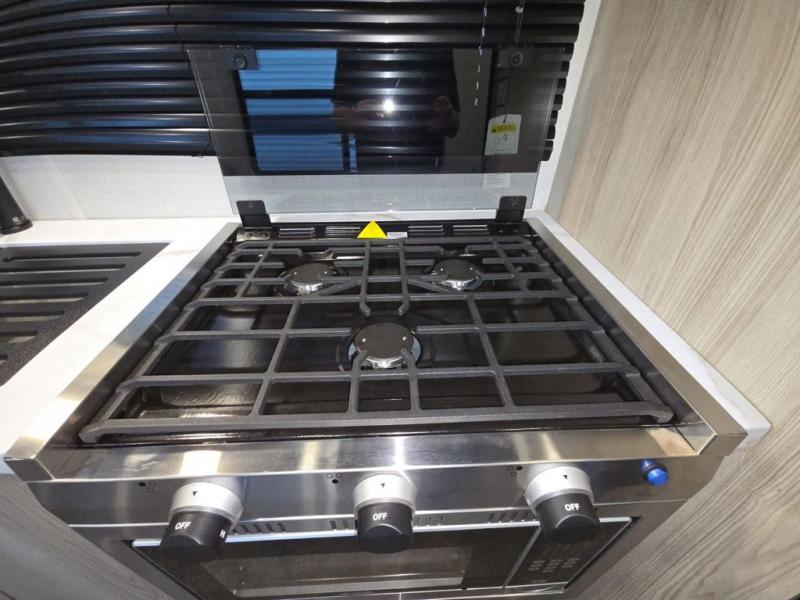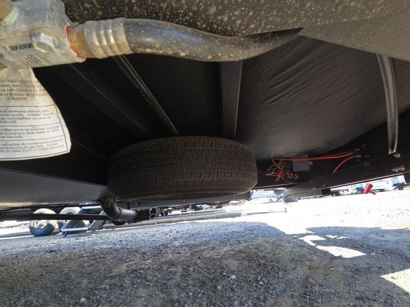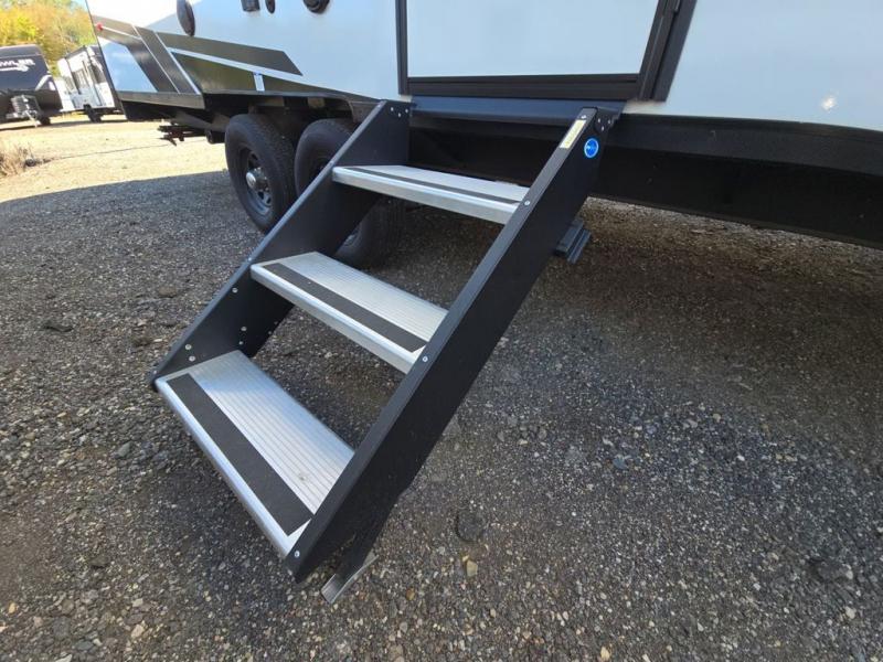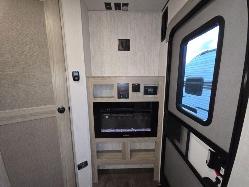 This toy hauler is packed to the Max with standard features and comforts. Once you unload your toys from the garage with a total of 13' 4" cargo space, you can enjoy lunch at the sofa/sleepers with a table. The kitchen includes a 12V refrigerator, and everyone will love the fireplace for a more at-home feel. Head through the bath to enjoy the front master bedroom with a king bed and dual wardrobes for your clothes!