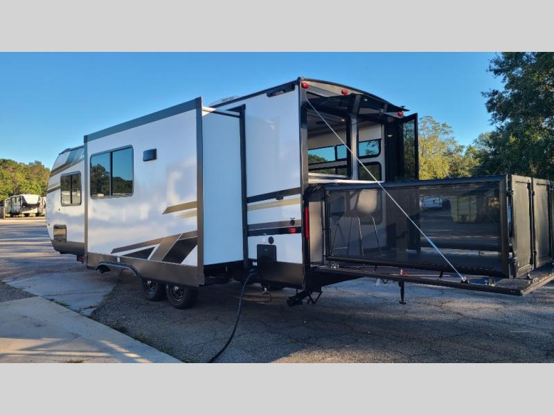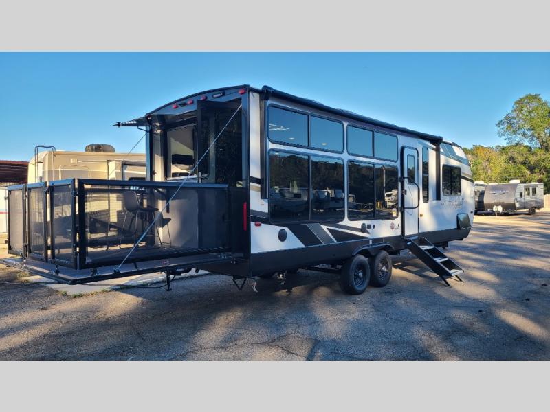 The Forest River Wildwood FSX travel trailer and toy haulers are easy to tow and easy to love, so come take a look! With each model you'll appreciate the 20K BTU furnace and 13,500 BTU A/C to keep you comfortable year around, and the large windows will make the whole unit seem bright and open. The EZ entrance includes an XL folding grab assist handle, and the power awning with LED lights provide an outdoor living space you are sure to love. The lightweight Wildwood FSX travel trailers and toy haulers are your ticket to the great outdoors. Choose yours today!