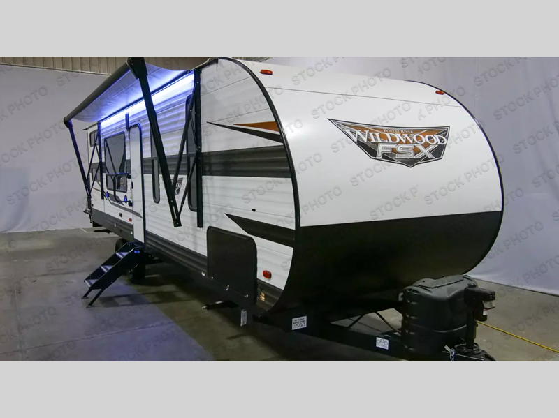 The Forest River Wildwood FSX travel trailer and toy haulers are easy to tow and easy to love, so come take a look! With each model you'll appreciate the 20K BTU furnace and A/C unit to keep you comfortable year around, and the large windows will make the whole unit seem bright and open. The EZ entrance includes an XL folding grab assist handle, and the power awning with LED lights provide an outdoor living space you are sure to love. The lightweight Wildwood FSX travel trailers and toy haulers are your ticket to the great outdoors. Choose yours today!