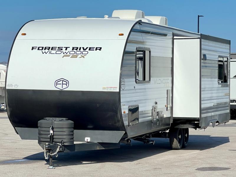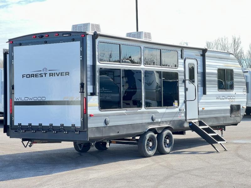 The Forest River Wildwood FSX travel trailer and toy haulers are easy to tow and easy to love, so come take a look! With each model you'll appreciate the 20K BTU furnace and A/C unit to keep you comfortable year around, and the large windows will make the whole unit seem bright and open. The EZ entrance includes an XL folding grab assist handle, and the power awning with LED lights provide an outdoor living space you are sure to love. The lightweight Wildwood FSX travel trailers and toy haulers are your ticket to the great outdoors. Choose yours today!