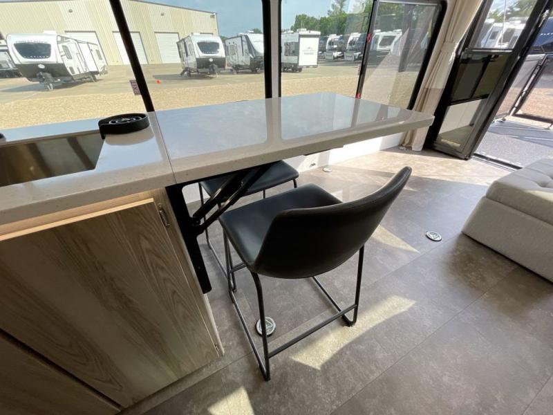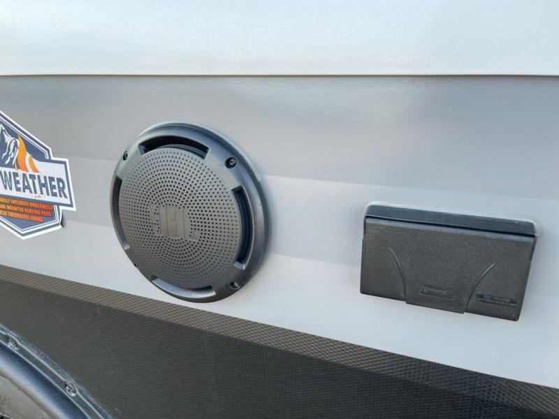 It will be so easy to enjoy camping trips in this spacious toy hauler for two! There are 1,500 lb. tie-downs to keep your toys secure during transport, and the ramp door will make it easier than ever to unload. Once the bikes are out, you can then set up the 1,500 lb. capacity patio! The main living area is made cozy thanks to the chaise lounge and theater seating directly across from the TV prep and movie projector with premium sound. The chef of your group will love the large island peninsula for more prep space plus the entire unit is carpet free for easy cleaning. And don't overlook the front private bedroom with a king bed plus a full bath close by to freshen up!