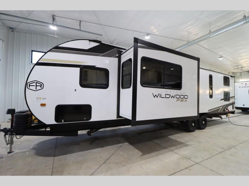 The Forest River Wildwood FSX travel trailers and toy hauler travel trailers are ultra comfortable and lightweight, perfect for first time or seasoned campers alike! You will love how easy it will be to relax with residential features that will make your space feel just like home, and the durable construction means you can enjoy your RV for years to come. There are a wide variety of floorplans to choose from, including couple's trailers, bunk models, and toy haulers, all with full bath and kitchen amenities and plenty of storage for all your gear!