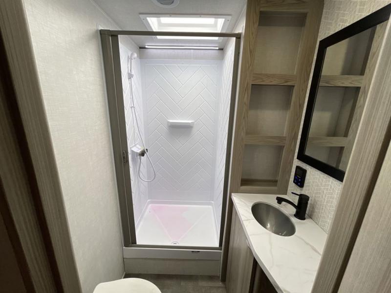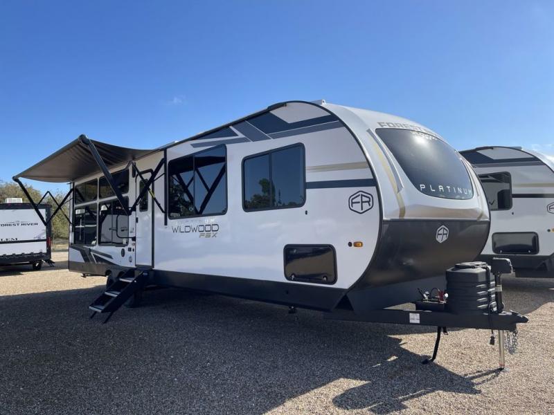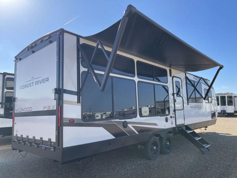 The Forest River Wildwood FSX travel trailer and toy haulers are easy to tow and easy to love, so come take a look! With each model you'll appreciate the 20K BTU furnace and A/C unit to keep you comfortable year around, and the large windows will make the whole unit seem bright and open. The EZ entrance includes an XL folding grab assist handle, and the power awning with LED lights provide an outdoor living space you are sure to love. The lightweight Wildwood FSX travel trailers and toy haulers are your ticket to the great outdoors. Choose yours today!