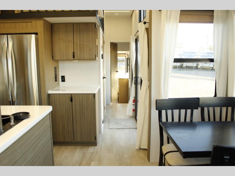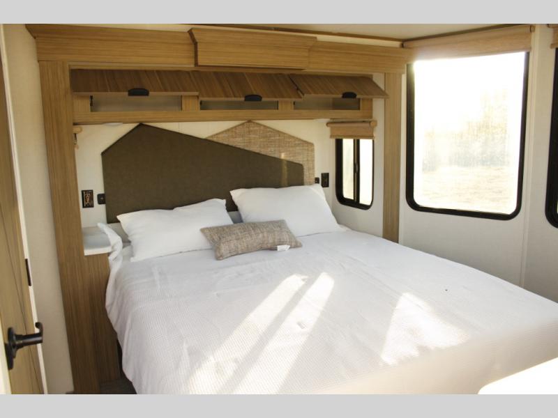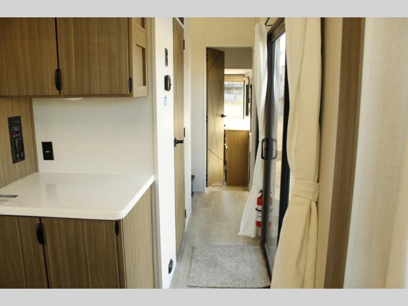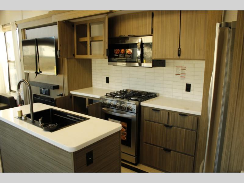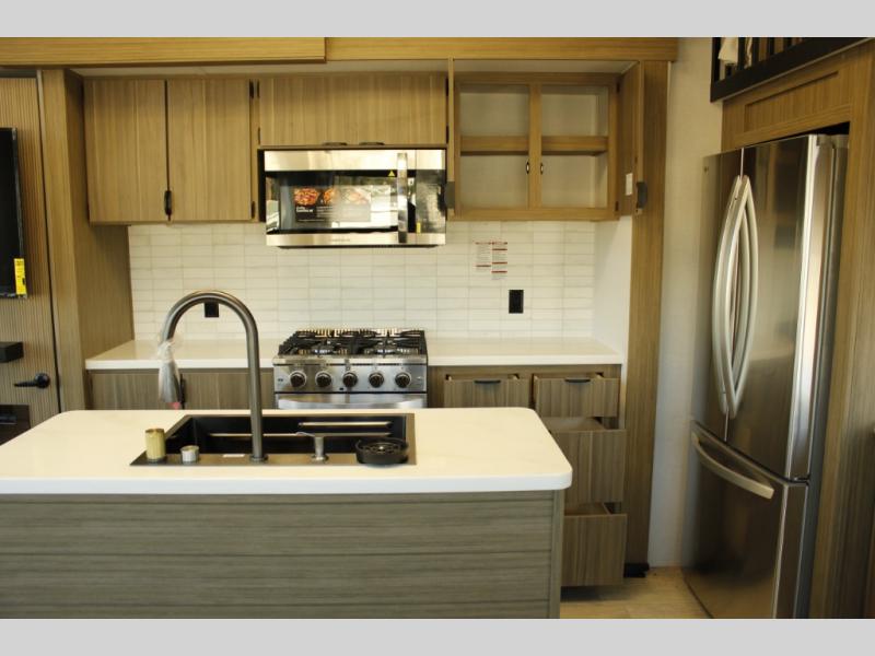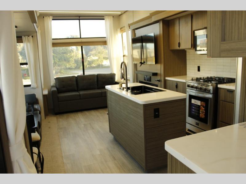 With any Wildwood Grand Lodge destination trailer by Forest River, you can enjoy extended stays wherever you go! There is 4K awning blade lighting outside, along with slide out awning toppers, plus a heated and enclosed Accessibelly for added protection. Inside, you'll love the stylish backsplash update, elegant curtain rods and curtains, TFL black walnut entertainment shelves, and stainless steel kitchen appliances. A Serta mattress in the bedroom(s) will provide comfort to each journey, and there is a tankless water heater for hot water when you need it.