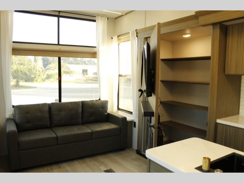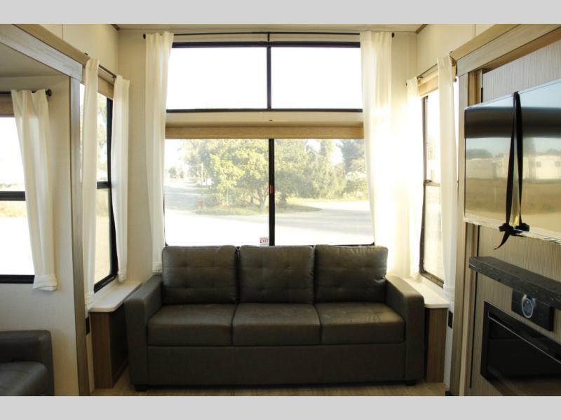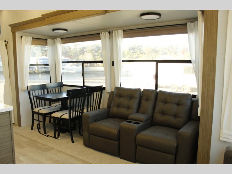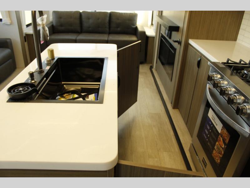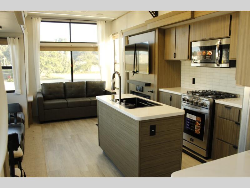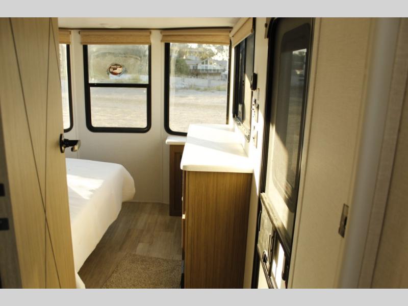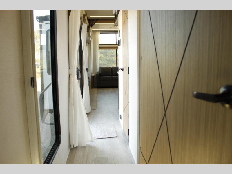 With any Wildwood Grand Lodge destination trailer by Forest River, you can enjoy extended stays wherever you go! There is 4K awning blade lighting outside, along with slide out awning toppers, plus a heated and enclosed Accessibelly for added protection. Inside, you'll love the stylish backsplash update, elegant curtain rods and curtains, TFL black walnut entertainment shelves, and stainless steel kitchen appliances. A Serta mattress in the bedroom(s) will provide comfort to each journey, and there is a tankless water heater for hot water when you need it.