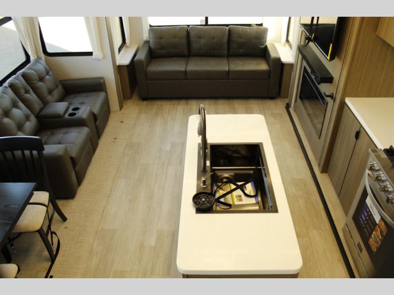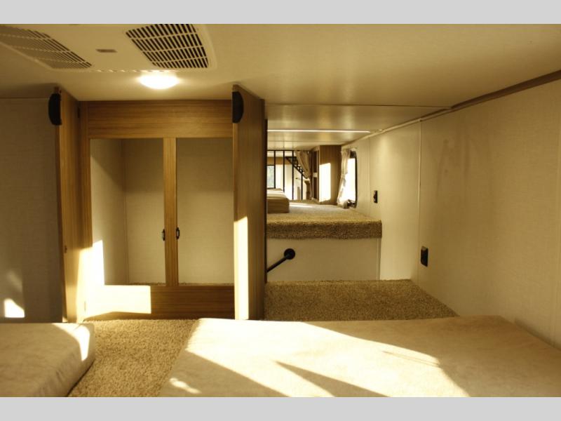 Choose a quiet spot in the woods or a fun location on the lake for your Wildwood Grand Lodge destination trailer by Forest River. Everyone will enjoy the spacious rooms with three slides throughout, and the double loft provides three bunk mats that your children or grandchildren will love. Dual entry door include a set of patio doors for the main entrance plus a private entry door that leads into the front master bedroom for added convenience. You will love the large walk-in pantry for all of your non-perishables and the kitchen island that provides extra counter space to prep and serve your meals. And there is much more to enjoy each time you stay in this Grand Lodge.