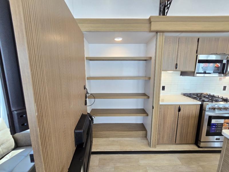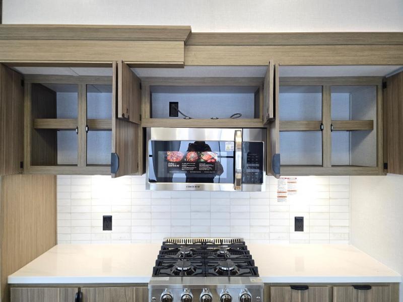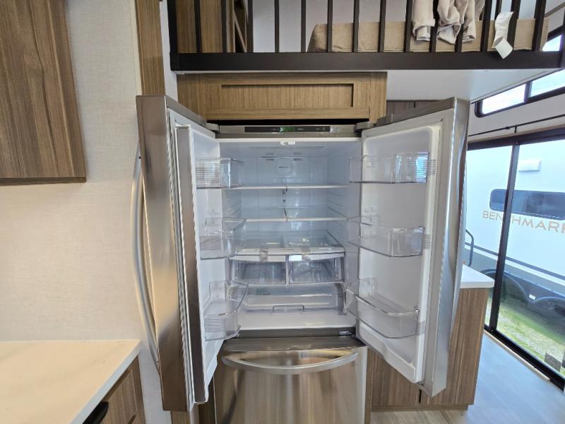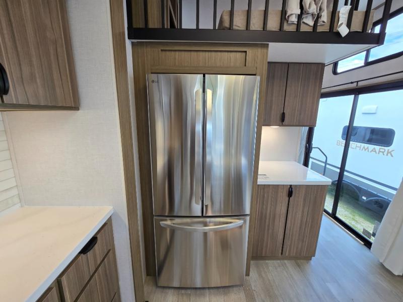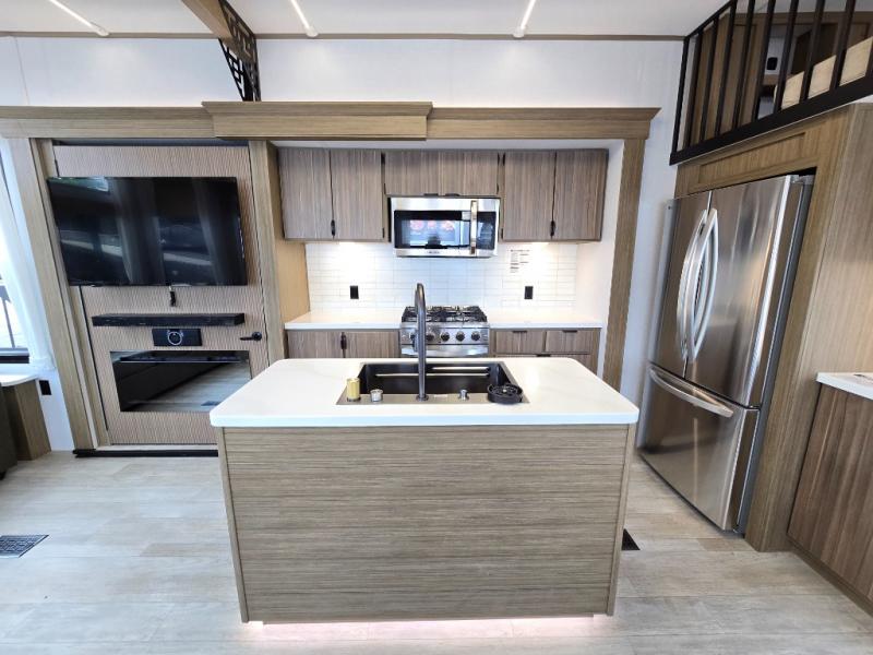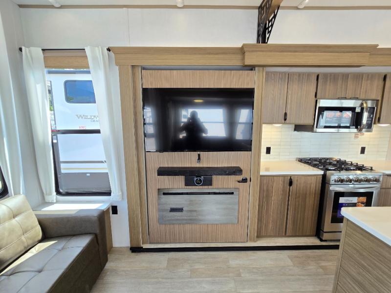 With any Wildwood Grand Lodge destination trailer by Forest River, you can enjoy extended stays wherever you go! There is 4K awning blade lighting outside, along with slide out awning toppers, plus a heated and enclosed Accessibelly for added protection. Inside, you'll love the stylish backsplash update, elegant curtain rods and curtains, TFL black walnut entertainment shelves, and stainless steel kitchen appliances. A Serta mattress in the bedroom(s) will provide comfort to each journey, and there is a tankless water heater for hot water when you need it.