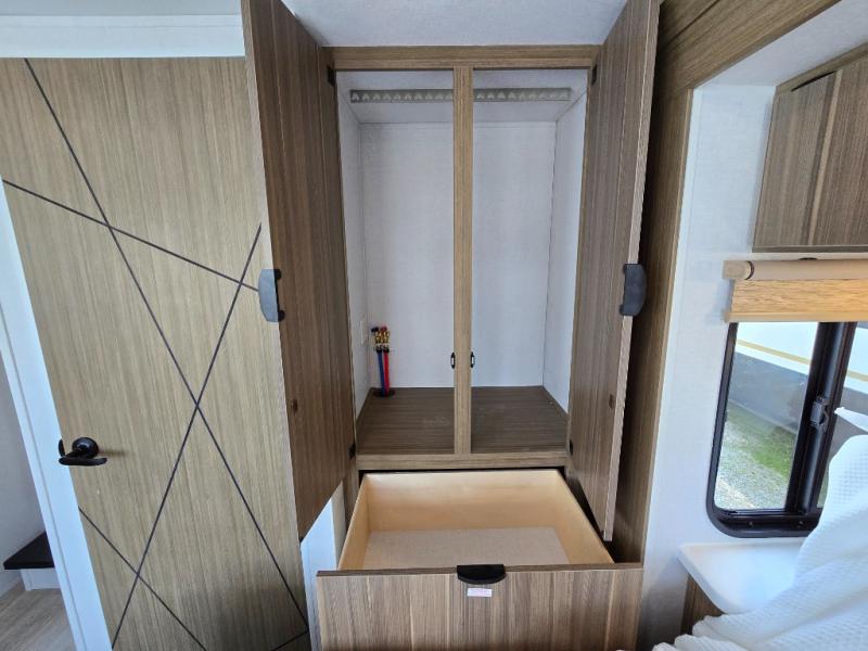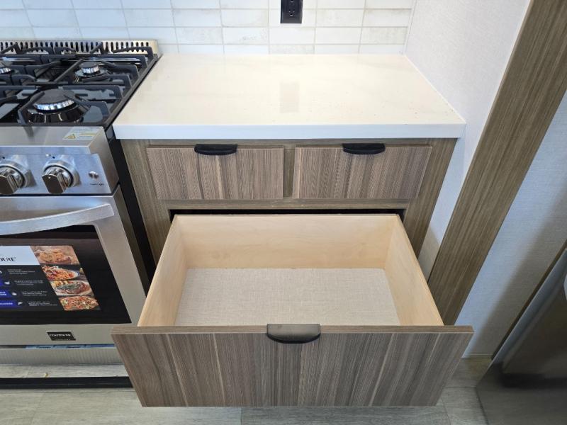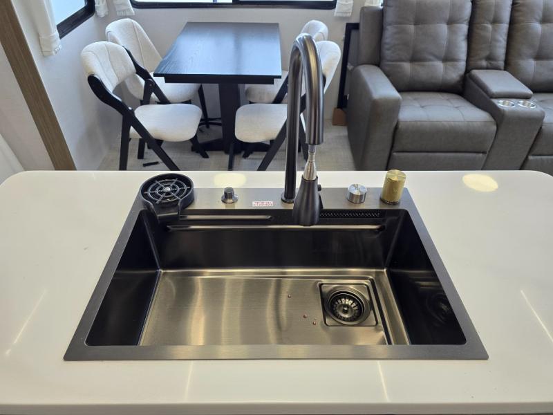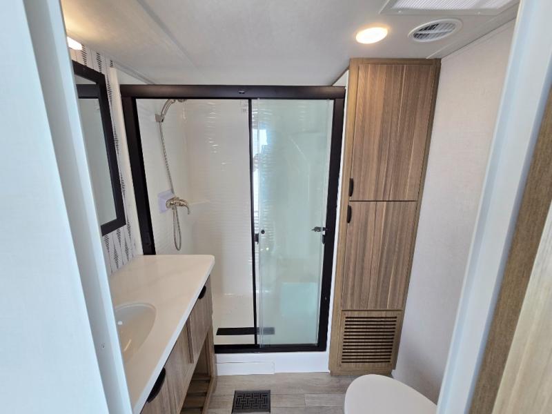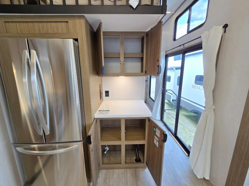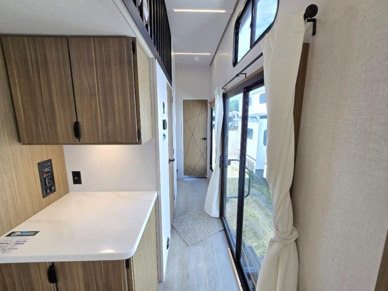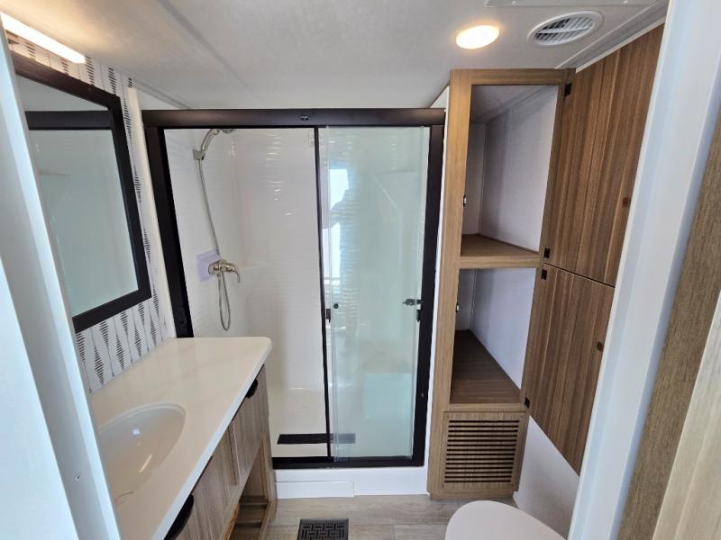 With any Wildwood Grand Lodge destination trailer by Forest River, you can enjoy extended stays wherever you go! There is 4K awning blade lighting outside, along with slide out awning toppers, plus a heated and enclosed Accessibelly for added protection. Inside, you'll love the stylish backsplash update, elegant curtain rods and curtains, TFL black walnut entertainment shelves, and stainless steel kitchen appliances. A Serta mattress in the bedroom(s) will provide comfort to each journey, and there is a tankless water heater for hot water when you need it.