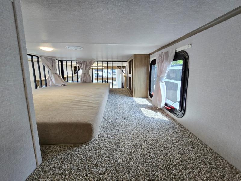 Choose a quiet spot in the woods or a fun location on the lake for your Wildwood Grand Lodge destination trailer by Forest River. Everyone will enjoy the spacious rooms with three slides throughout, and the double loft provides three bunk mats that your children or grandchildren will love. Dual entry door include a set of patio doors for the main entrance plus a private entry door that leads into the front master bedroom for added convenience. You will love the large walk-in pantry for all of your non-perishables and the kitchen island that provides extra counter space to prep and serve your meals. And there is much more to enjoy each time you stay in this Grand Lodge.