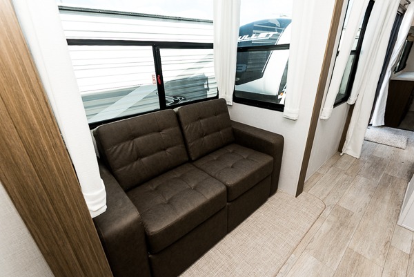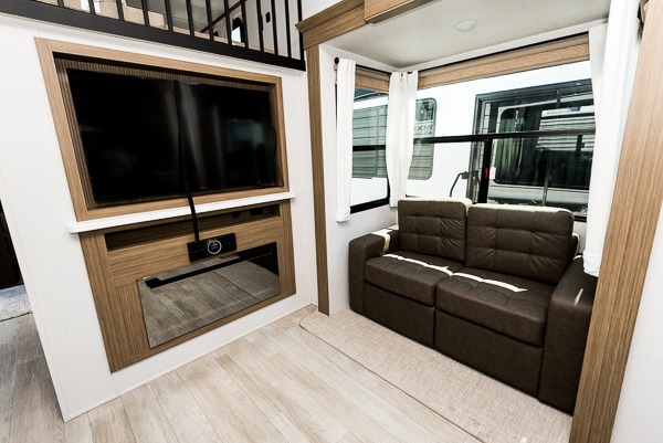 Let all of your cares go free with this Wildwood Grand Lodge destination trailer! Forget about trying to squish your family into one tiny unit because this trailer gives you space to spread out and enjoy yourself. In the central portion of this trailer, you will find a living area that has opposing sofa slides, an entertainment center, a fireplace, and even a ceiling fan. While the chef of the family is preparing dinner in the separate front kitchen, you can sit down at the free-standing table with chairs to chat with them. To keep your kids from running around on the main level while you are getting dinner ready, you can send them upstairs to the double loft where they can work on puzzles and games. They will find four bunk mats and storage, and you can sleep in your own king bed with versa-tilt in privacy in the rear bedroom with the option to add prep for a washer/dryer if you like.