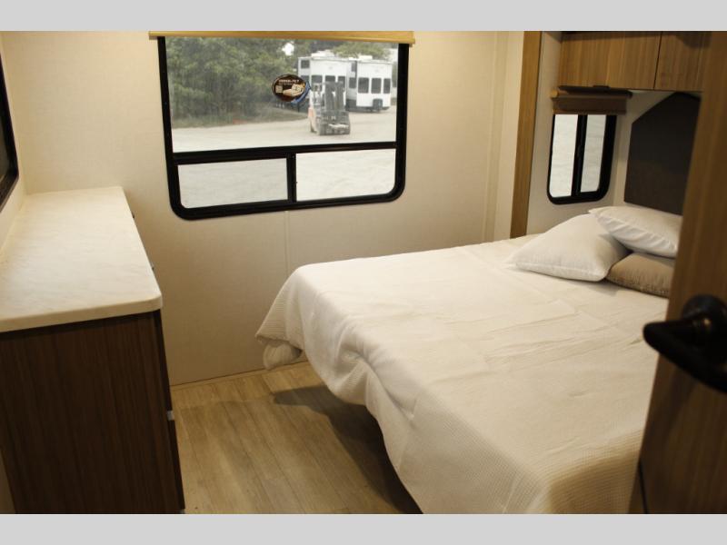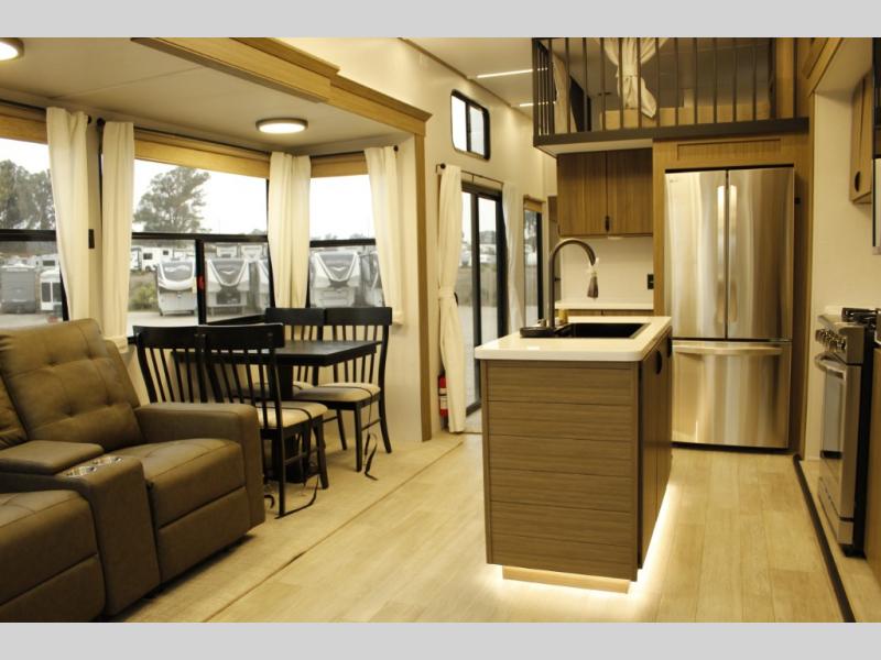 You will experience a home away from home with any one of these Forest River Wildwood Grand Lodge destination trailers! Their construction consists of a 12" forged I-beam frame, a cambered chassis, and plywood floor decking, as well as 5" bowed truss roof rafters, 3/8" roof decking, and color coded water lines to make life easier. The one-piece, seamless slides and 106" interior living room height makes for more walking around space. A Best in Class Value package includes upgraded designer furniture, a central vacuum with sweep attachment, and stainless steel kitchen appliances. Plus, it also features a heated and enclosed Accessi-Belly with removable panels and an exterior LED light strip under the awning. Come choose your favorite model today!