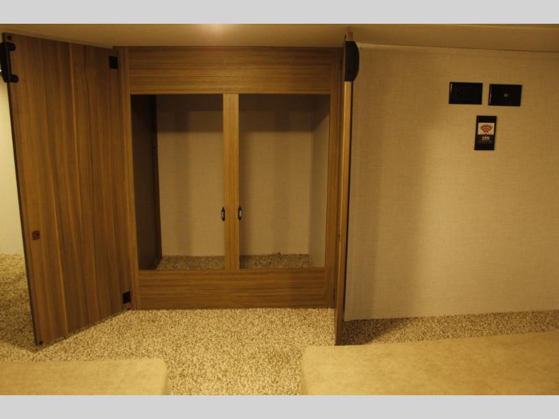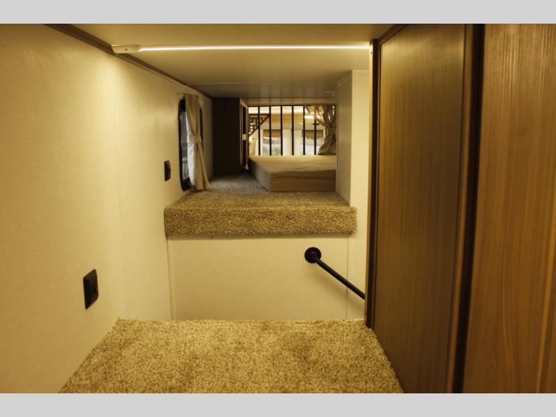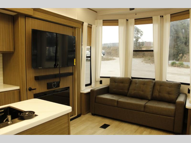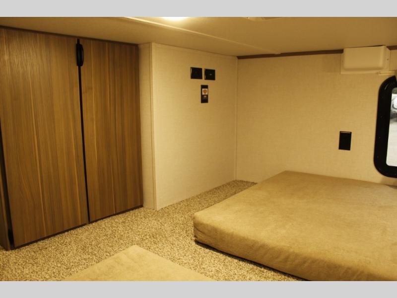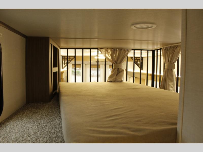 Keep your family happy by providing them with plenty of space and comforts in this Wildwood Grand Lodge destination trailer! The living area is such a gorgeous feature in this unit because of the panoramic front windows that allow you to feel as if you're right in the heart of your surroundings, and as you sit on the sofa next to the fireplace, you'll appreciate the ambiance it brings to this space. If you've decided to stay up late outside underneath the 21' awning, you can rest assured that you'll be able to get back inside quietly without waking anyone up because the second entry door leads directly into the rear private bedroom for your convenience so you can quickly fall asleep on your own king bed with versa-tilt. And the kids will love the double loft with three bunk mats and extra floor space to play.