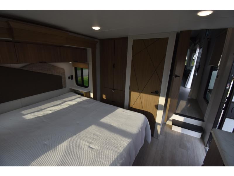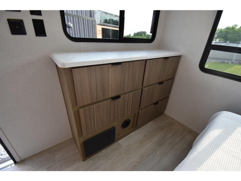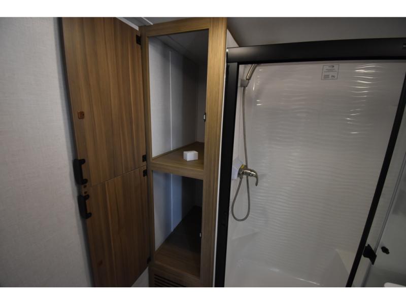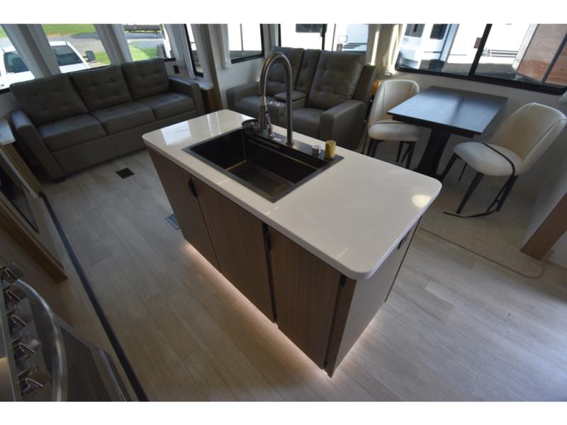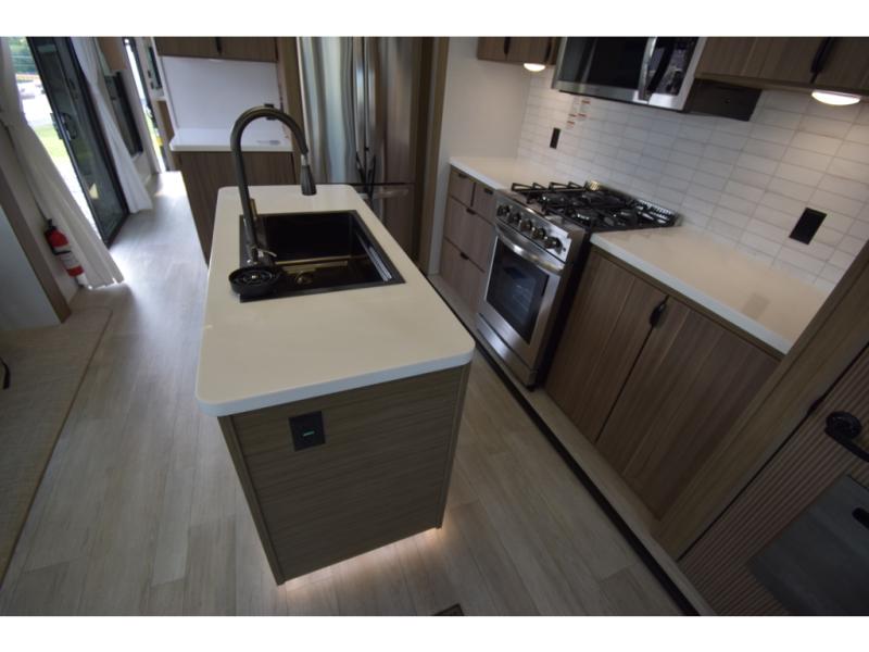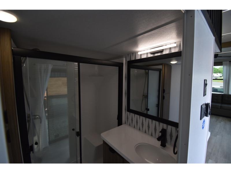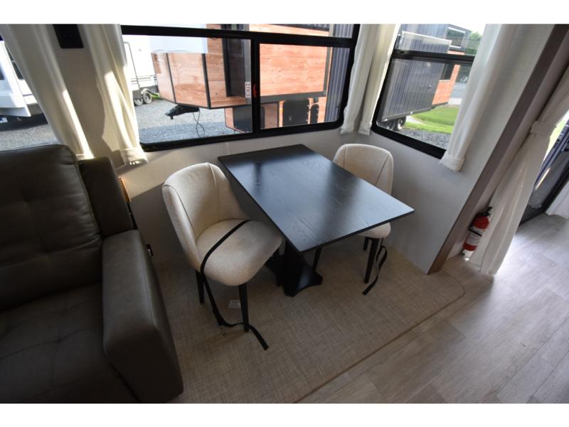 With any Wildwood Grand Lodge destination trailer by Forest River, you can enjoy extended stays wherever you go! There is 4K awning blade lighting outside, along with slide out awning toppers, plus a heated and enclosed Accessibelly for added protection. Inside, you'll love the stylish backsplash update, elegant curtain rods and curtains, TFL black walnut entertainment shelves, and stainless steel kitchen appliances. A Serta mattress in the bedroom(s) will provide comfort to each journey, and there is a tankless water heater for hot water when you need it.