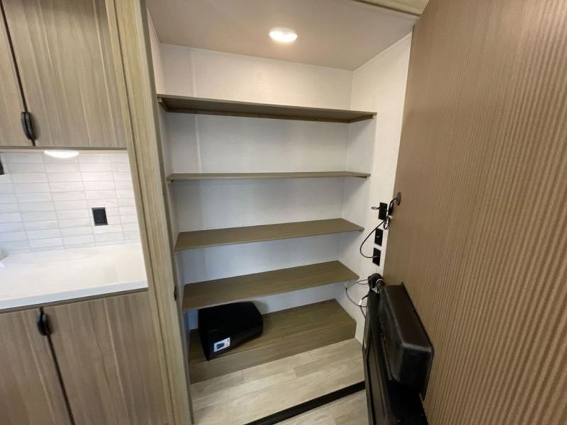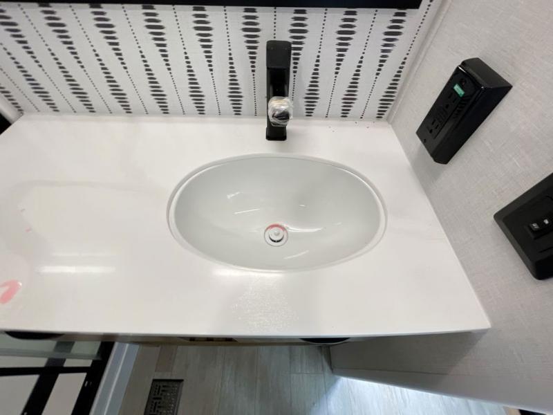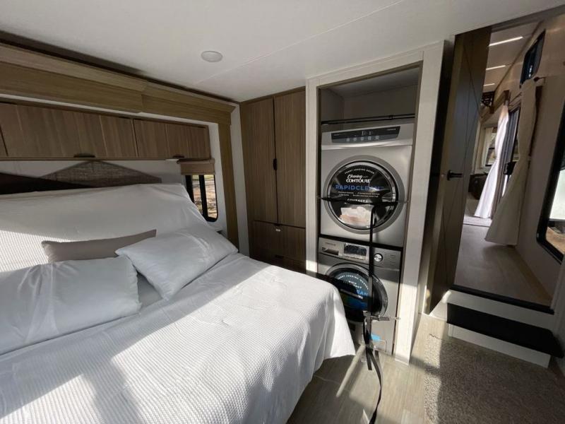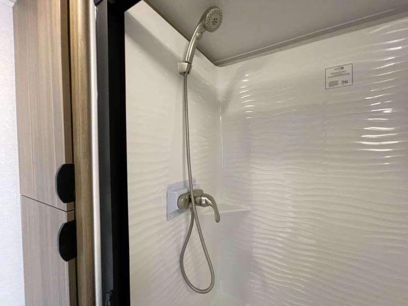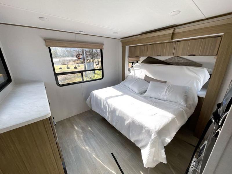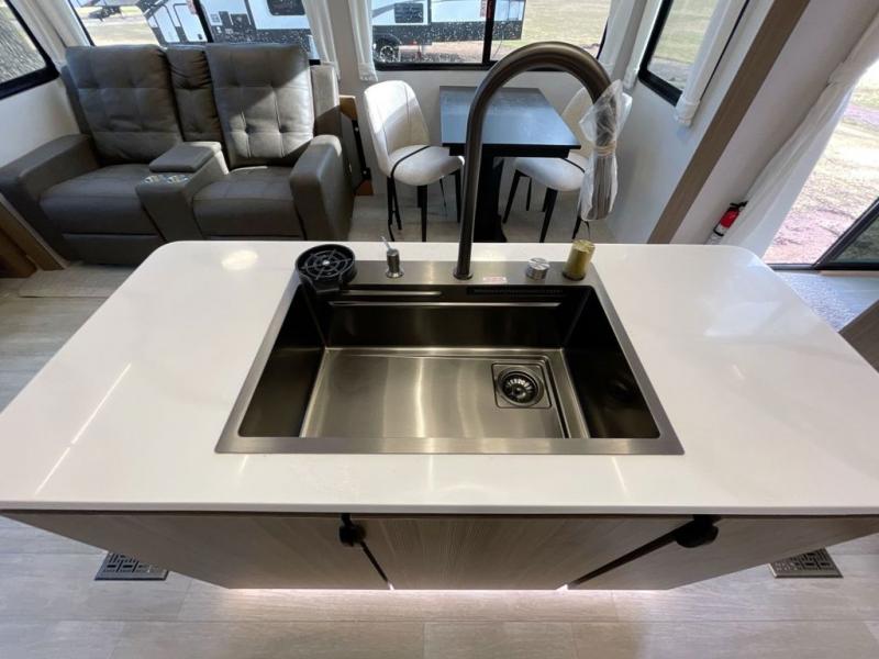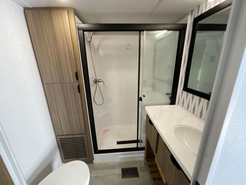 With any Wildwood Grand Lodge destination trailer by Forest River, you can enjoy extended stays wherever you go! There is 4K awning blade lighting outside, along with slide out awning toppers, plus a heated and enclosed Accessibelly for added protection. Inside, you'll love the stylish backsplash update, elegant curtain rods and curtains, TFL black walnut entertainment shelves, and stainless steel kitchen appliances. A Serta mattress in the bedroom(s) will provide comfort to each journey, and there is a tankless water heater for hot water when you need it.