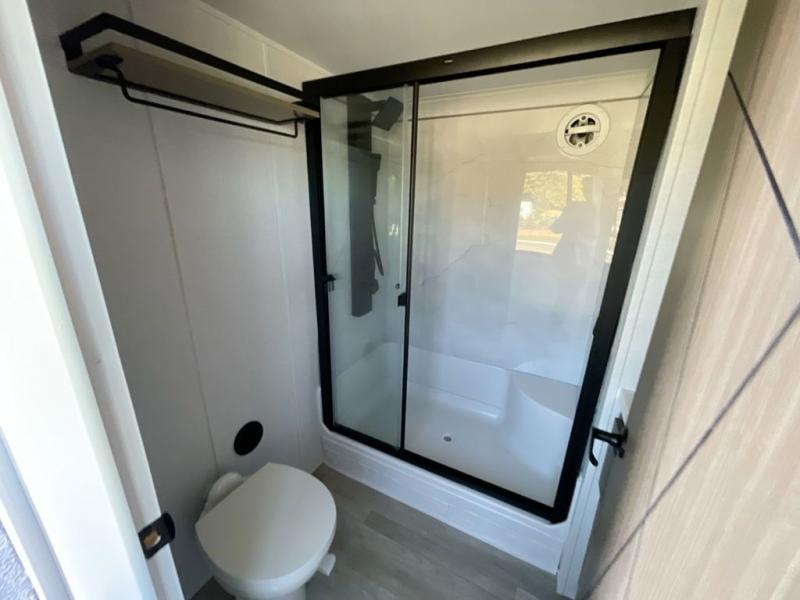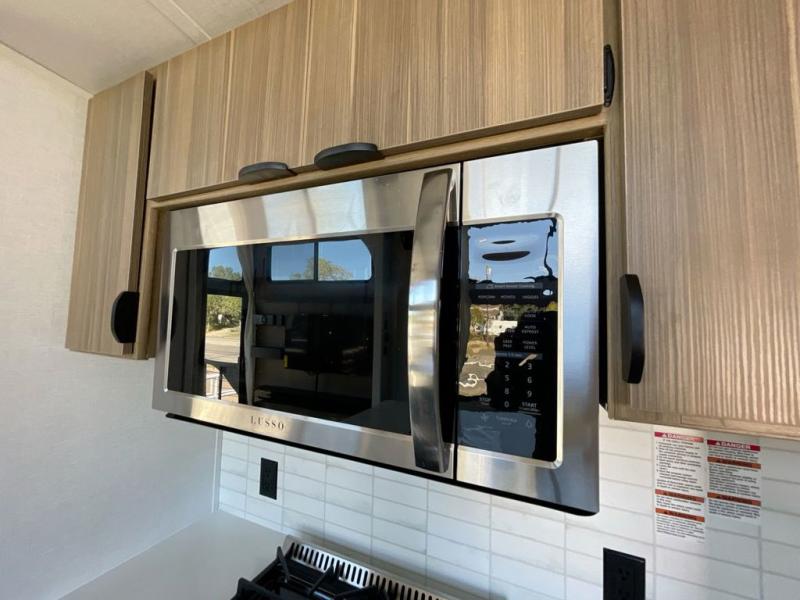 With any Wildwood Grand Lodge destination trailer by Forest River, you can enjoy extended stays wherever you go! There is 4K awning blade lighting outside, along with slide out awning toppers, plus a heated and enclosed Accessibelly for added protection. Inside, you'll love the stylish backsplash update, elegant curtain rods and curtains, TFL black walnut entertainment shelves, and stainless steel kitchen appliances. A Serta mattress in the bedroom(s) will provide comfort to each journey, and there is a tankless water heater for hot water when you need it.
