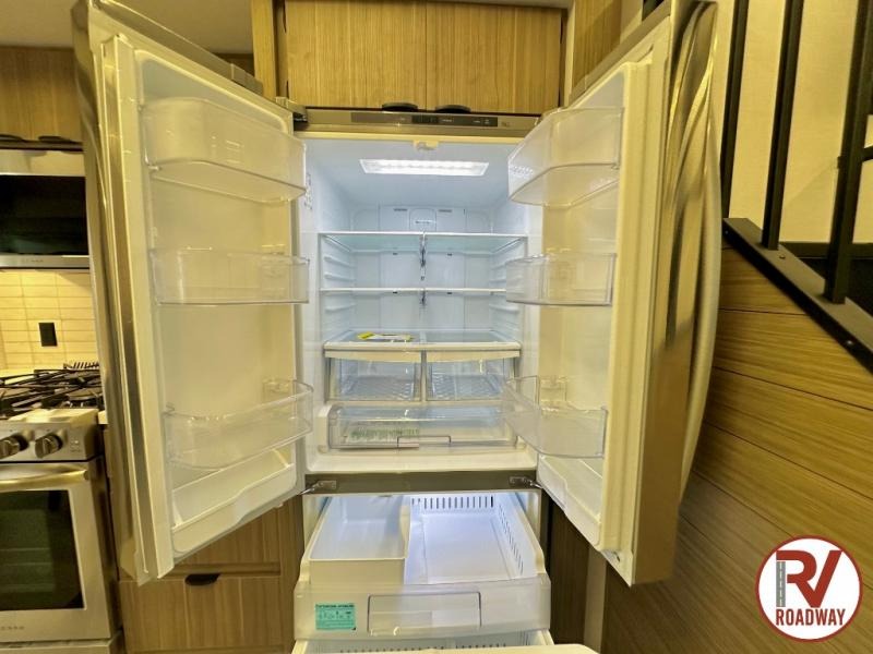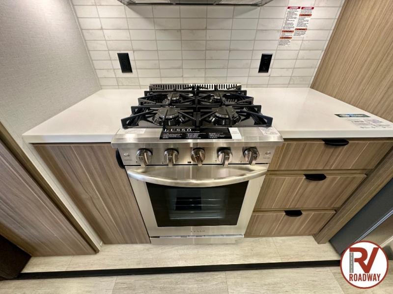 With any Wildwood Grand Lodge destination trailer by Forest River, you can enjoy extended stays wherever you go! There is 4K awning blade lighting outside, along with slide out awning toppers, plus a heated and enclosed Accessibelly for added protection. Inside, you'll love the stylish backsplash update, elegant curtain rods and curtains, TFL black walnut entertainment shelves, and stainless steel kitchen appliances. A Serta mattress in the bedroom(s) will provide comfort to each journey, and there is a tankless water heater for hot water when you need it.