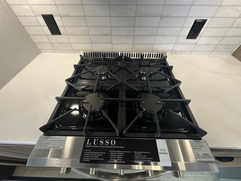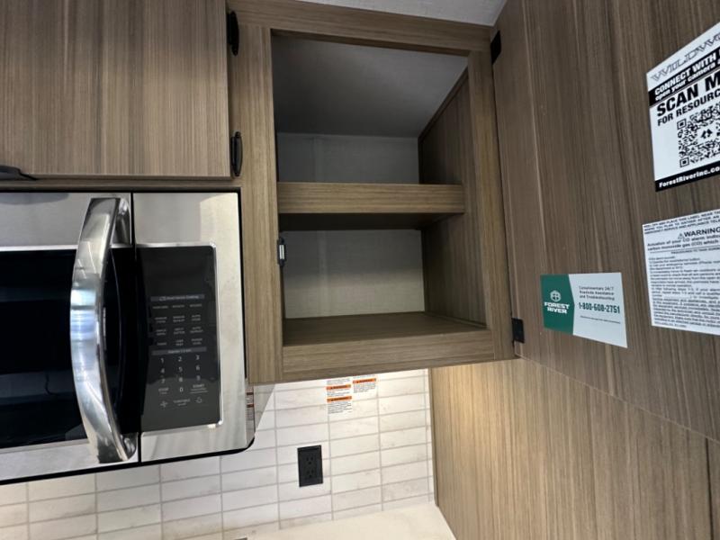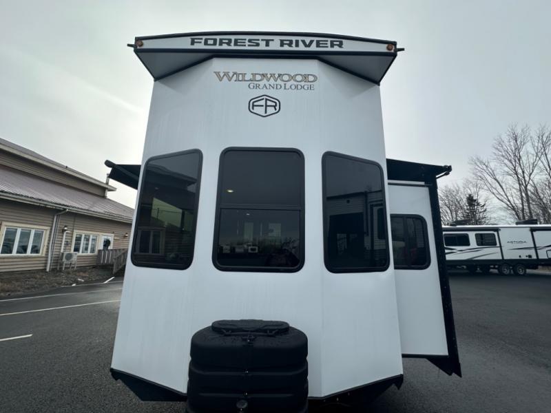 With any Wildwood Grand Lodge destination trailer by Forest River, you can enjoy extended stays wherever you go! There is 4K awning blade lighting outside, along with slide out awning toppers, plus a heated and enclosed Accessibelly for added protection. Inside, you'll love the stylish backsplash update, elegant curtain rods and curtains, TFL black walnut entertainment shelves, and stainless steel kitchen appliances. A Serta mattress in the bedroom(s) will provide comfort to each journey, and there is a tankless water heater for hot water when you need it.