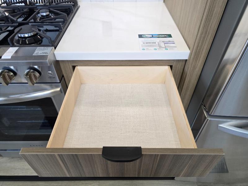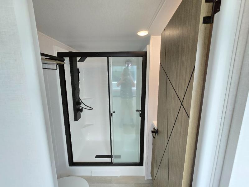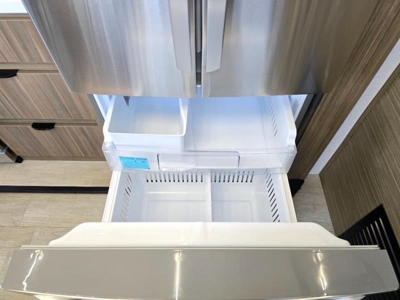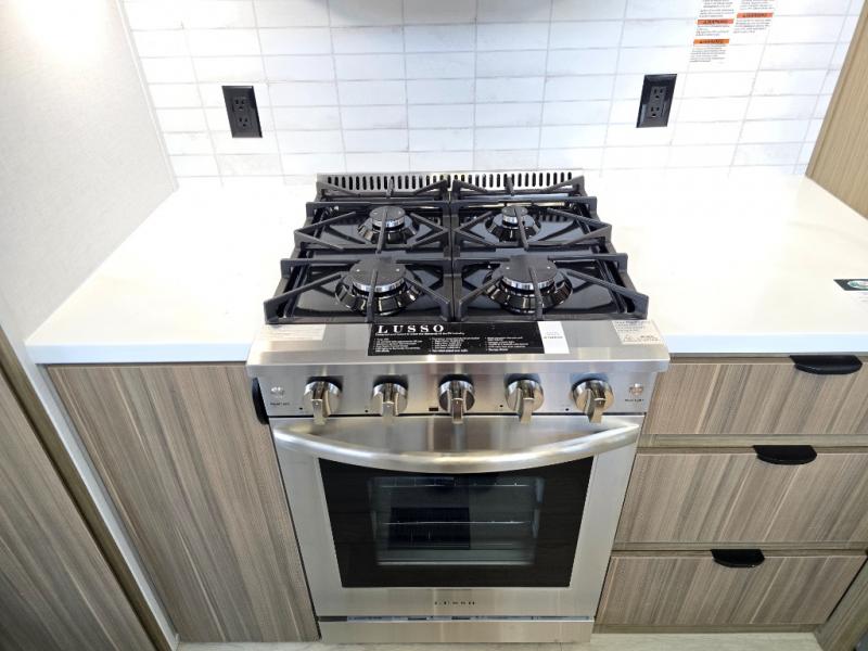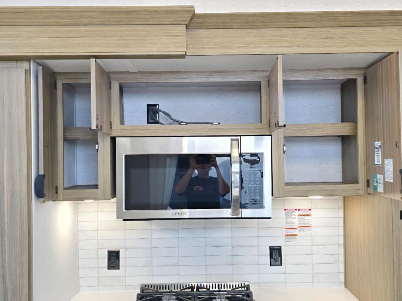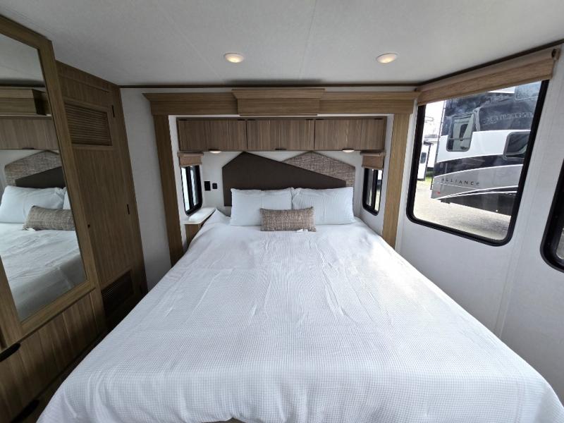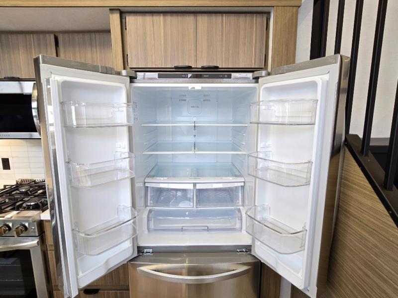 With any Wildwood Grand Lodge destination trailer by Forest River, you can enjoy extended stays wherever you go! There is 4K awning blade lighting outside, along with slide out awning toppers, plus a heated and enclosed Accessibelly for added protection. Inside, you'll love the stylish backsplash update, elegant curtain rods and curtains, TFL black walnut entertainment shelves, and stainless steel kitchen appliances. A Serta mattress in the bedroom(s) will provide comfort to each journey, and there is a tankless water heater for hot water when you need it.