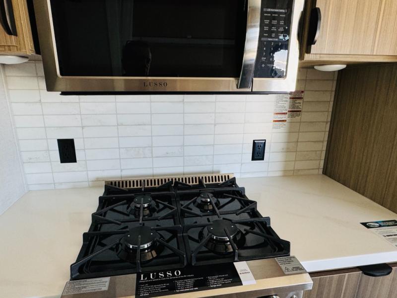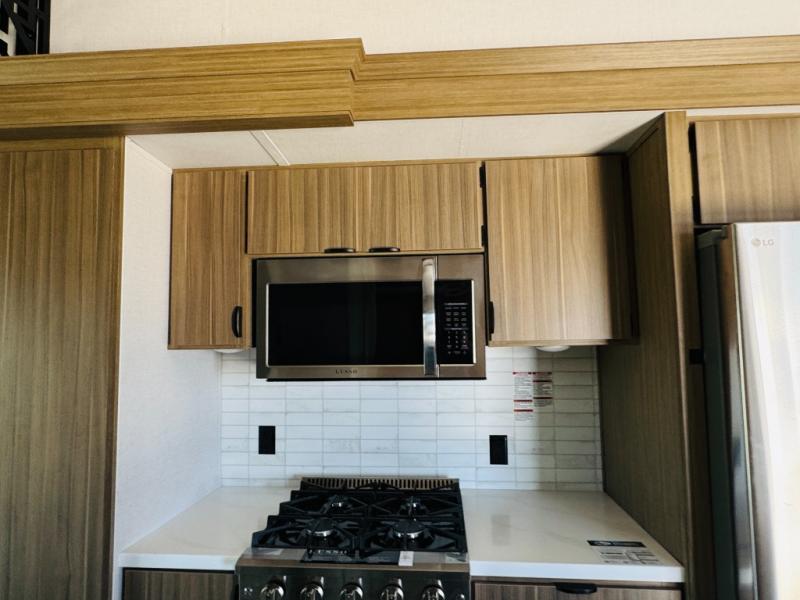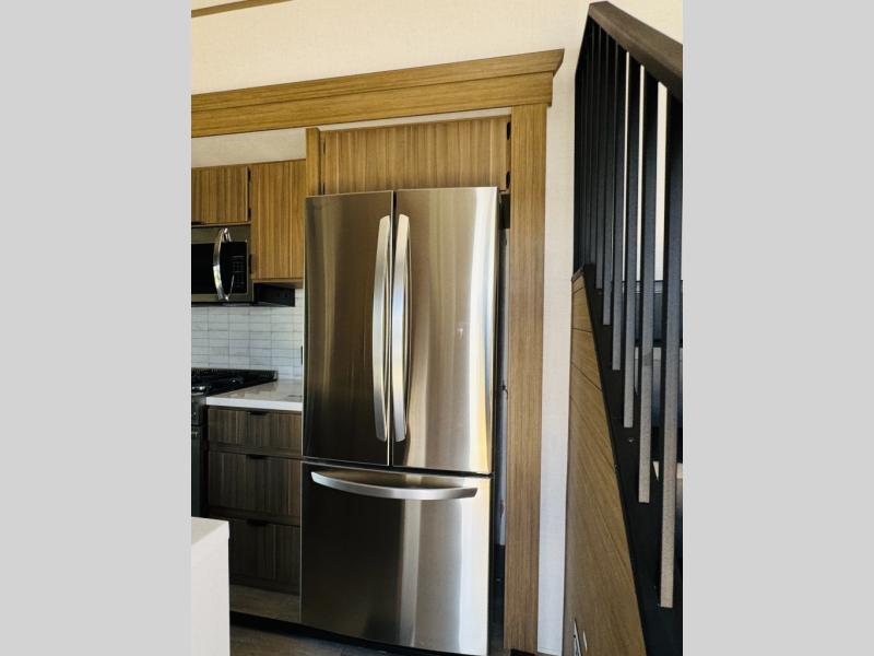 With any Wildwood Grand Lodge destination trailer by Forest River, you can enjoy extended stays wherever you go! There is 4K awning blade lighting outside, along with slide out awning toppers, plus a heated and enclosed Accessibelly for added protection. Inside, you'll love the stylish backsplash update, elegant curtain rods and curtains, TFL black walnut entertainment shelves, and stainless steel kitchen appliances. A Serta mattress in the bedroom(s) will provide comfort to each journey, and there is a tankless water heater for hot water when you need it.