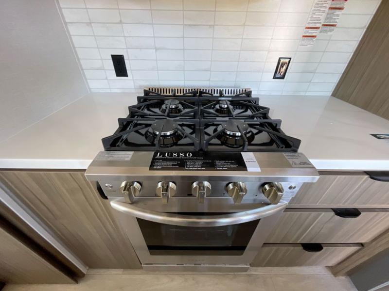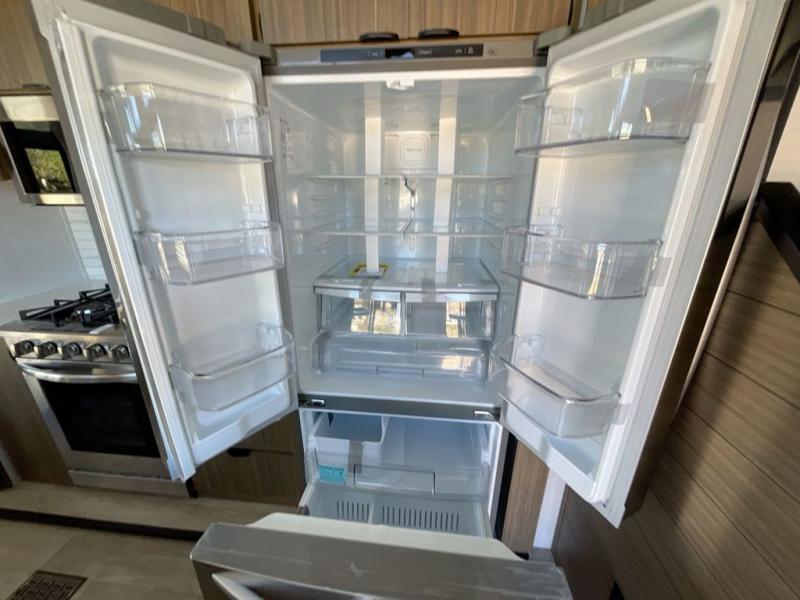 With any Wildwood Grand Lodge destination trailer by Forest River, you can enjoy extended stays wherever you go! There is 4K awning blade lighting outside, along with slide out awning toppers, plus a heated and enclosed Accessibelly for added protection. Inside, you'll love the stylish backsplash update, elegant curtain rods and curtains, TFL black walnut entertainment shelves, and stainless steel kitchen appliances. A Serta mattress in the bedroom(s) will provide comfort to each journey, and there is a tankless water heater for hot water when you need it.