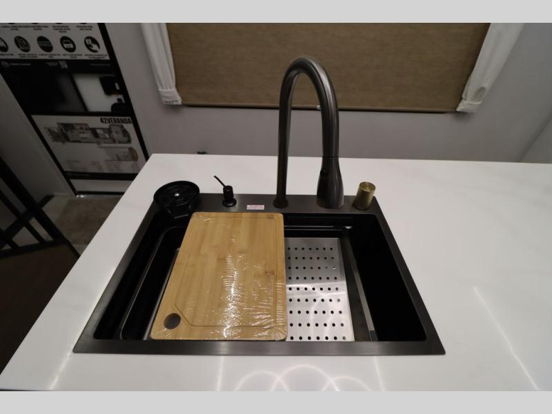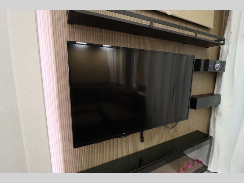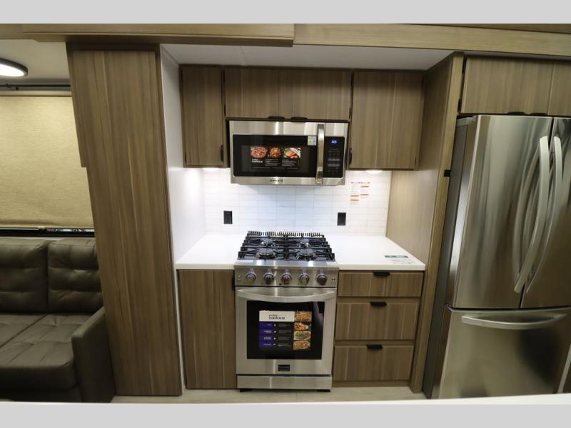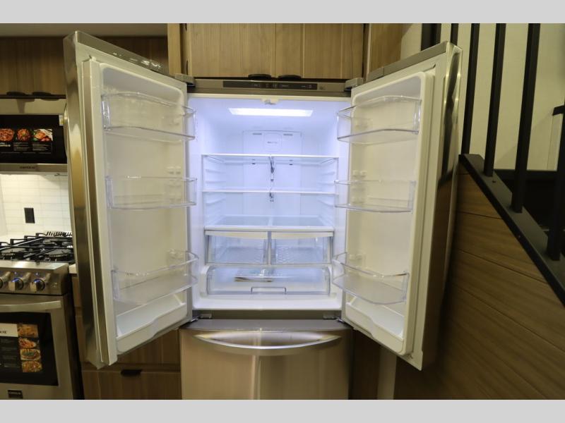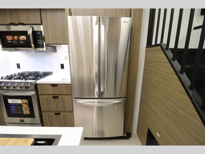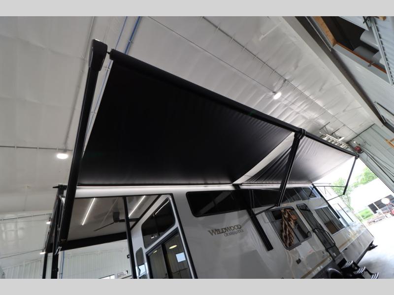 With any Wildwood Grand Lodge destination trailer by Forest River, you can enjoy extended stays wherever you go! There is 4K awning blade lighting outside, along with slide out awning toppers, plus a heated and enclosed Accessibelly for added protection. Inside, you'll love the stylish backsplash update, elegant curtain rods and curtains, TFL black walnut entertainment shelves, and stainless steel kitchen appliances. A Serta mattress in the bedroom(s) will provide comfort to each journey, and there is a tankless water heater for hot water when you need it.