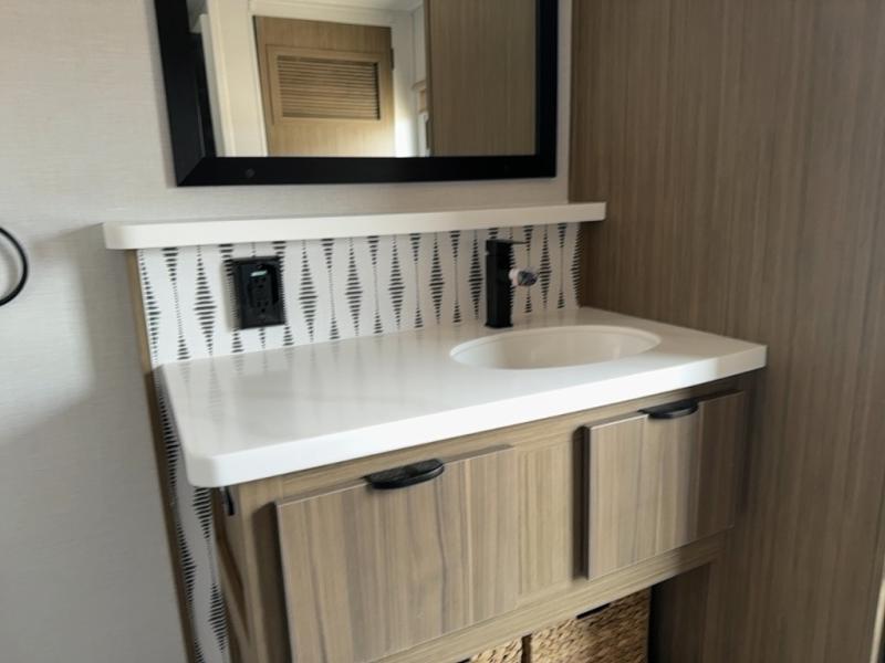 With any Wildwood Grand Lodge destination trailer by Forest River, you can enjoy extended stays wherever you go! There is 4K awning blade lighting outside, along with slide out awning toppers, plus a heated and enclosed Accessibelly for added protection. Inside, you'll love the stylish backsplash update, elegant curtain rods and curtains, TFL black walnut entertainment shelves, and stainless steel kitchen appliances. A Serta mattress in the bedroom(s) will provide comfort to each journey, and there is a tankless water heater for hot water when you need it.