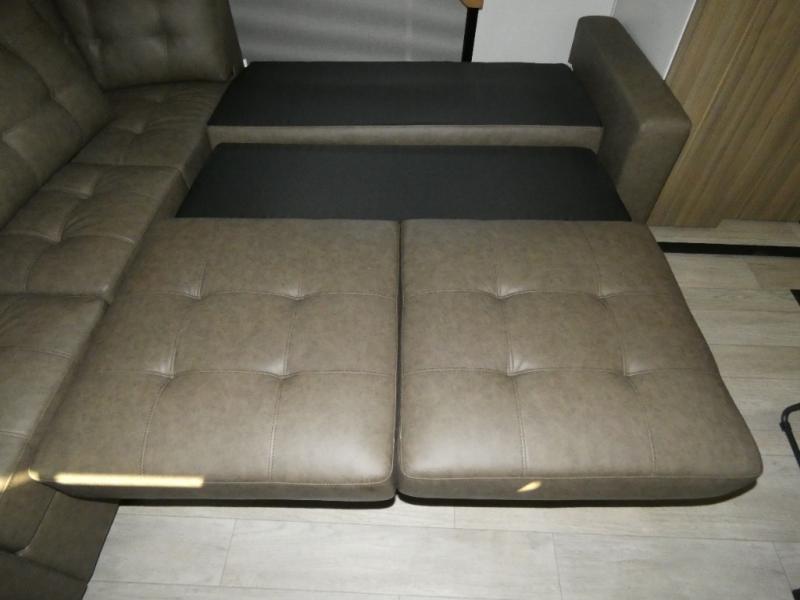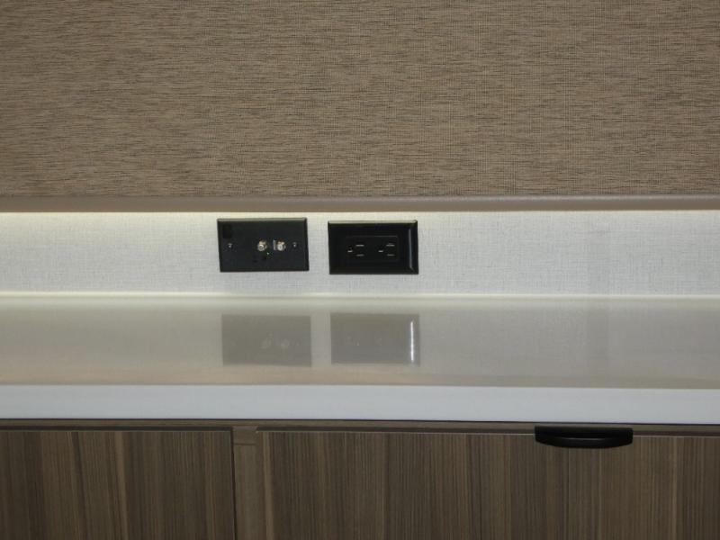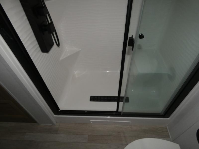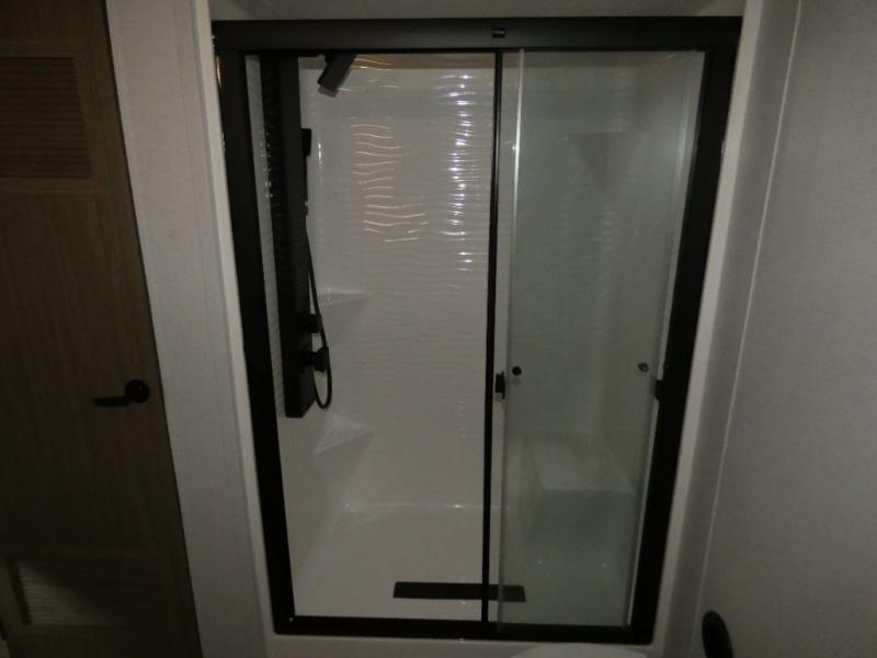 With any Wildwood Grand Lodge destination trailer by Forest River, you can enjoy extended stays wherever you go! There is 4K awning blade lighting outside, along with slide out awning toppers, plus a heated and enclosed Accessibelly for added protection. Inside, you'll love the stylish backsplash update, elegant curtain rods and curtains, TFL black walnut entertainment shelves, and stainless steel kitchen appliances. A Serta mattress in the bedroom(s) will provide comfort to each journey, and there is a tankless water heater for hot water when you need it.