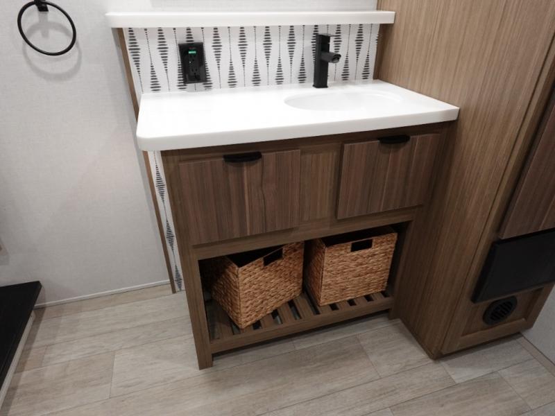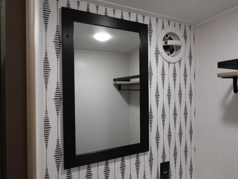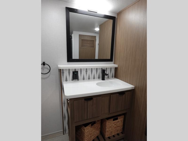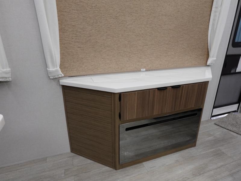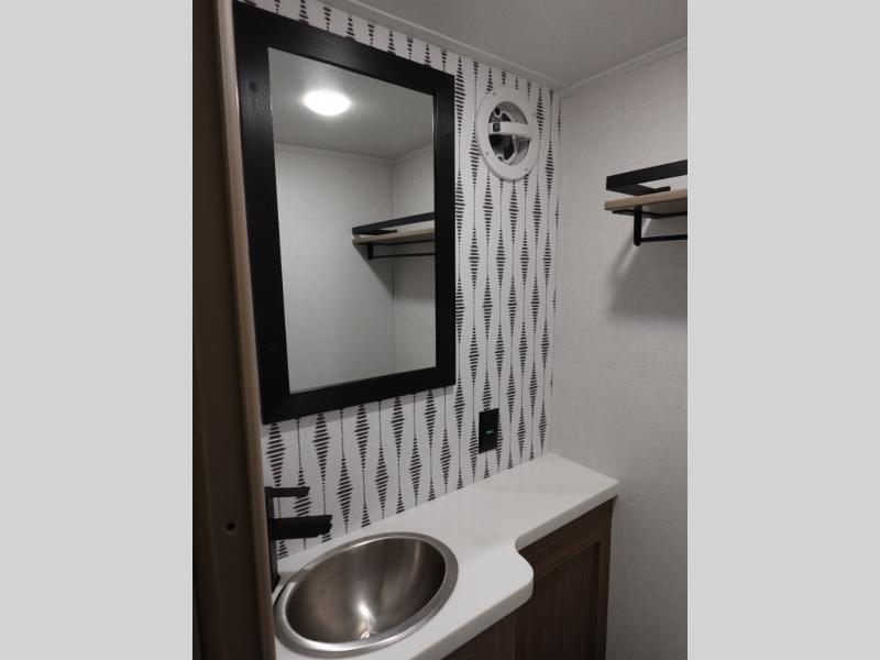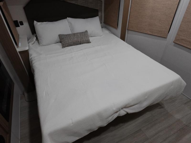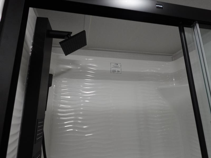 With any Wildwood Grand Lodge destination trailer by Forest River, you can enjoy extended stays wherever you go! There is 4K awning blade lighting outside, along with slide out awning toppers, plus a heated and enclosed Accessibelly for added protection. Inside, you'll love the stylish backsplash update, elegant curtain rods and curtains, TFL black walnut entertainment shelves, and stainless steel kitchen appliances. A Serta mattress in the bedroom(s) will provide comfort to each journey, and there is a tankless water heater for hot water when you need it.