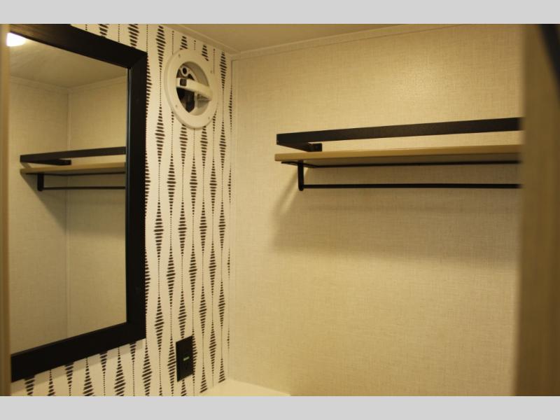 With any Wildwood Grand Lodge destination trailer by Forest River, you can enjoy extended stays wherever you go! There is 4K awning blade lighting outside, along with slide out awning toppers, plus a heated and enclosed Accessibelly for added protection. Inside, you'll love the stylish backsplash update, elegant curtain rods and curtains, TFL black walnut entertainment shelves, and stainless steel kitchen appliances. A Serta mattress in the bedroom(s) will provide comfort to each journey, and there is a tankless water heater for hot water when you need it.