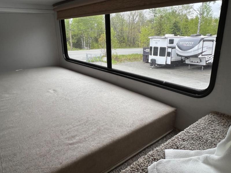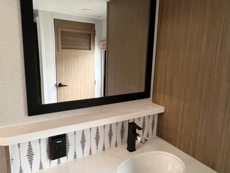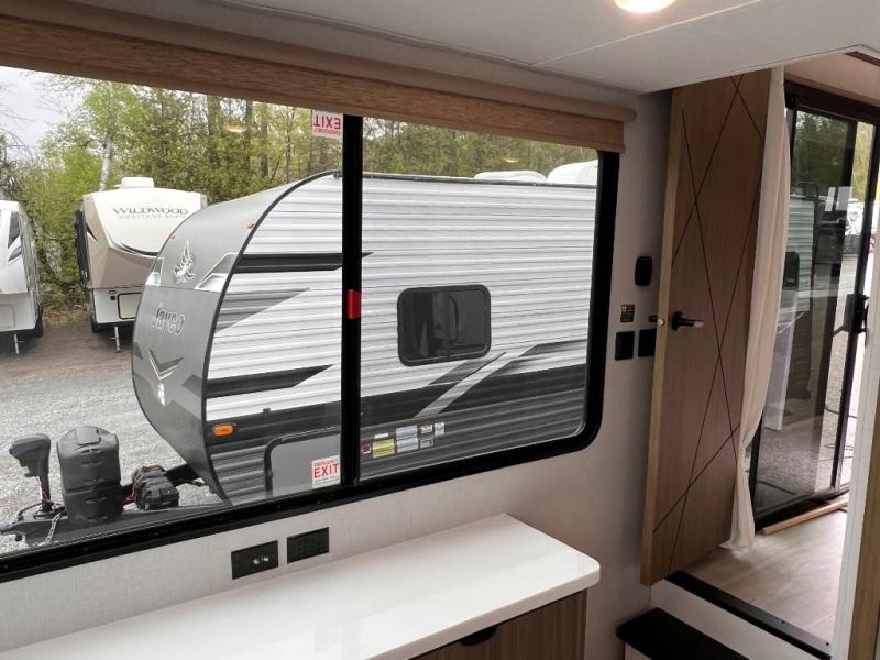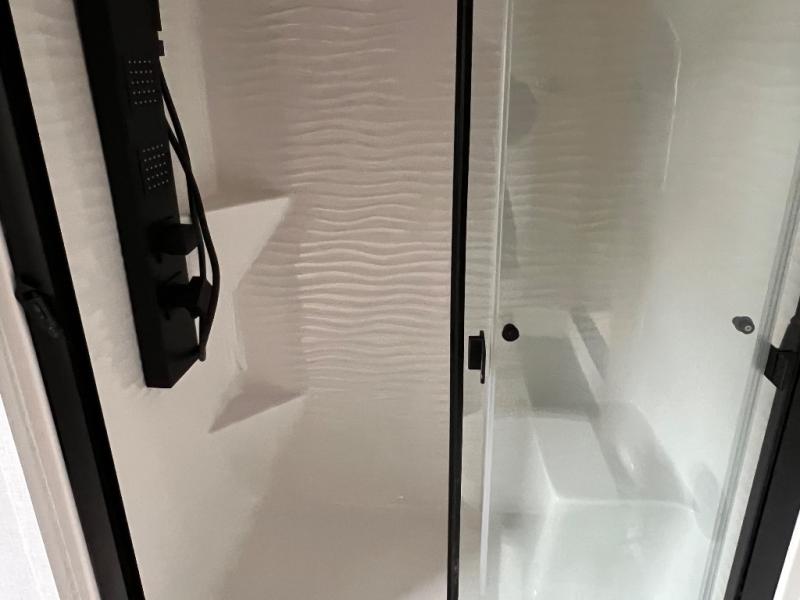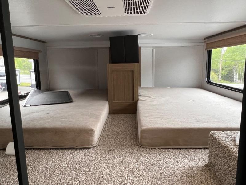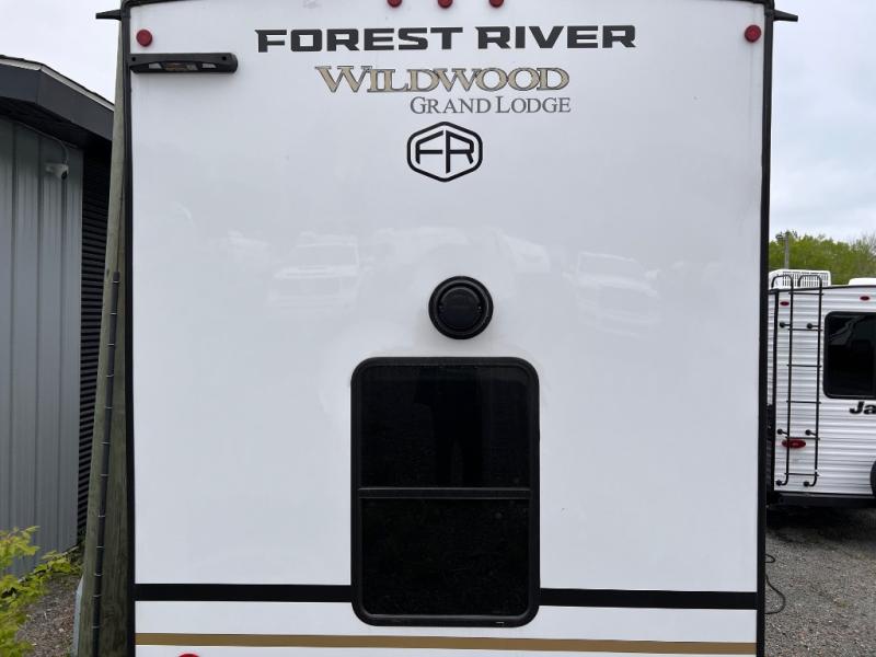 With any Wildwood Grand Lodge destination trailer by Forest River, you can enjoy extended stays wherever you go! There is 4K awning blade lighting outside, along with slide out awning toppers, plus a heated and enclosed Accessibelly for added protection. Inside, you'll love the stylish backsplash update, elegant curtain rods and curtains, TFL black walnut entertainment shelves, and stainless steel kitchen appliances. A Serta mattress in the bedroom(s) will provide comfort to each journey, and there is a tankless water heater for hot water when you need it.