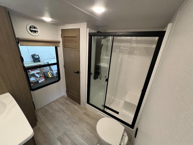 With any Wildwood Grand Lodge destination trailer by Forest River, you can enjoy extended stays wherever you go! There is 4K awning blade lighting outside, along with slide out awning toppers, plus a heated and enclosed Accessibelly for added protection. Inside, you'll love the stylish backsplash update, elegant curtain rods and curtains, TFL black walnut entertainment shelves, and stainless steel kitchen appliances. A Serta mattress in the bedroom(s) will provide comfort to each journey, and there is a tankless water heater for hot water when you need it.