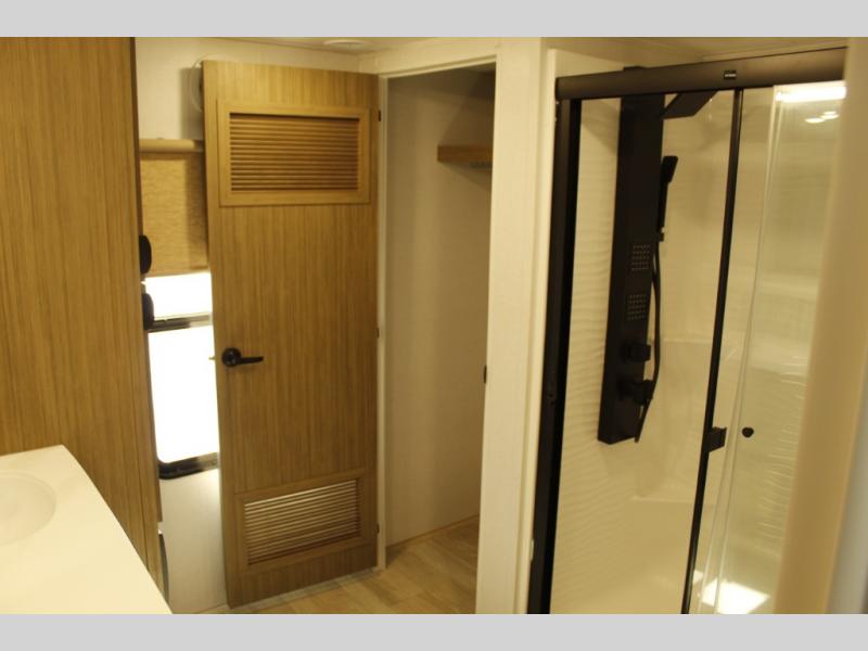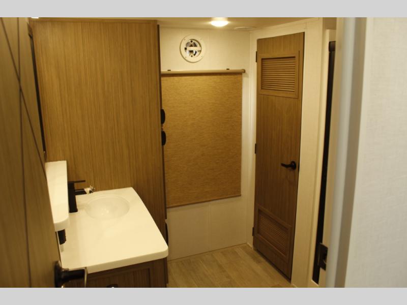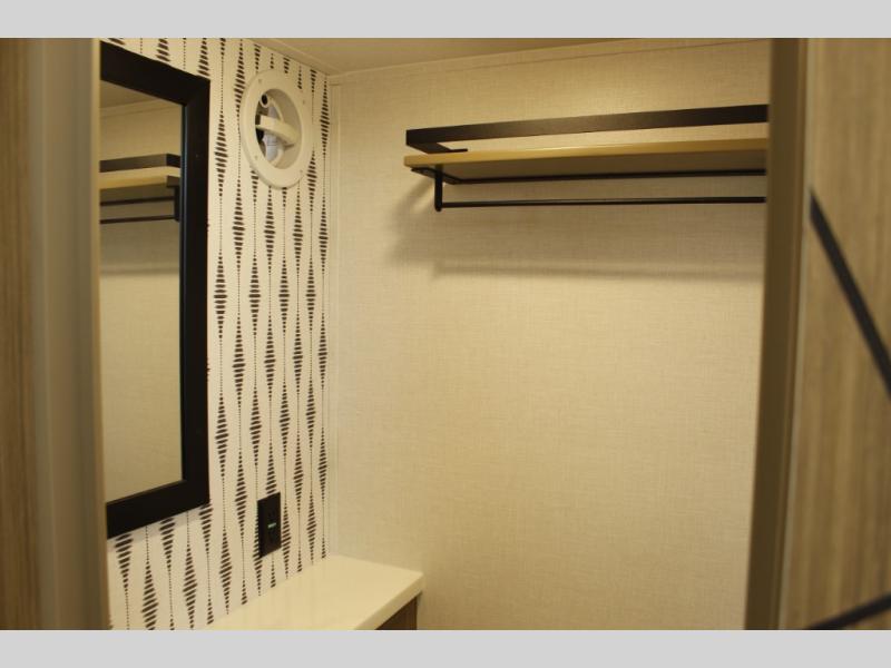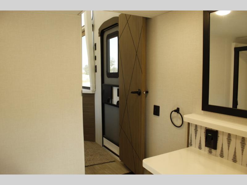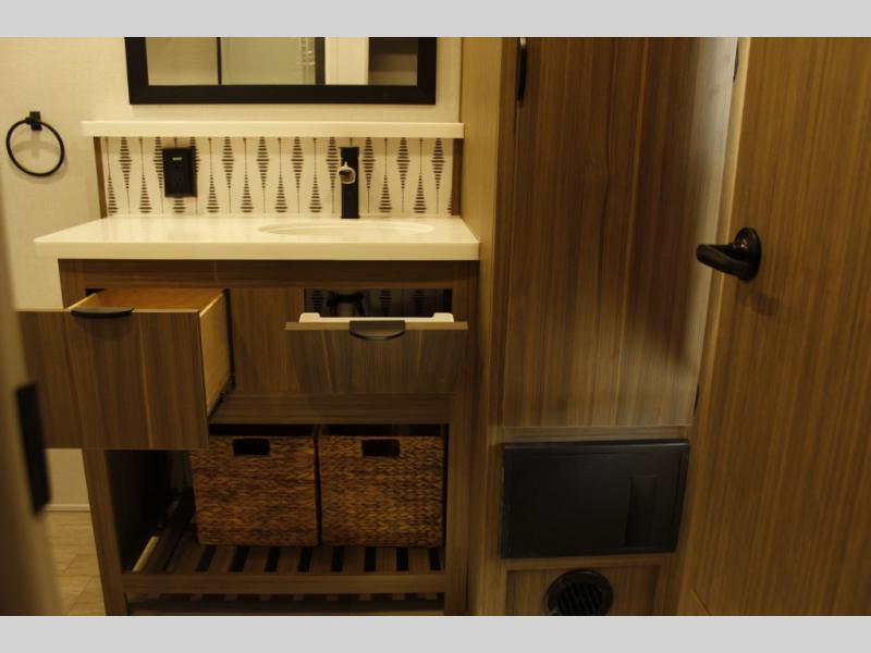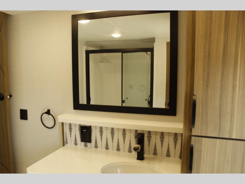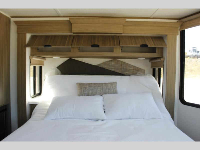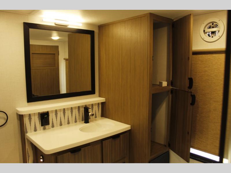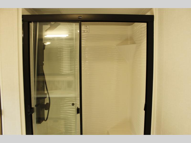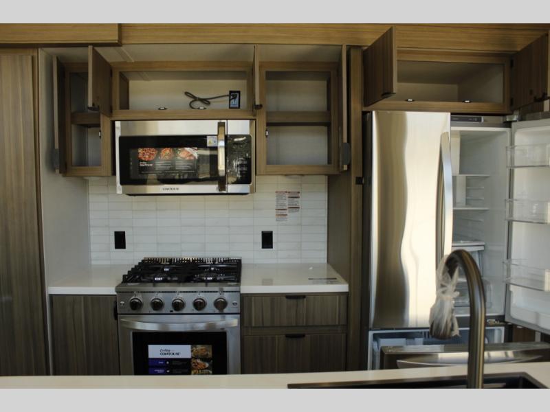 With any Wildwood Grand Lodge destination trailer by Forest River, you can enjoy extended stays wherever you go! There is 4K awning blade lighting outside, along with slide out awning toppers, plus a heated and enclosed Accessibelly for added protection. Inside, you'll love the stylish backsplash update, elegant curtain rods and curtains, TFL black walnut entertainment shelves, and stainless steel kitchen appliances. A Serta mattress in the bedroom(s) will provide comfort to each journey, and there is a tankless water heater for hot water when you need it.