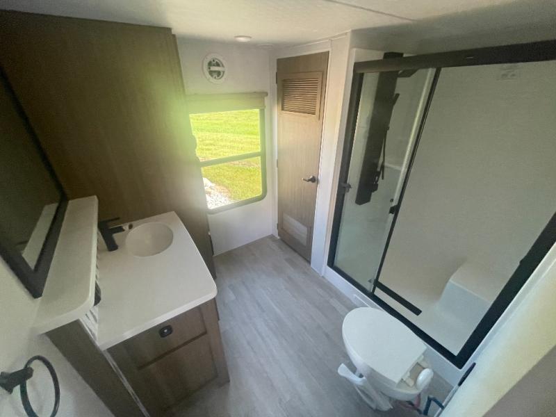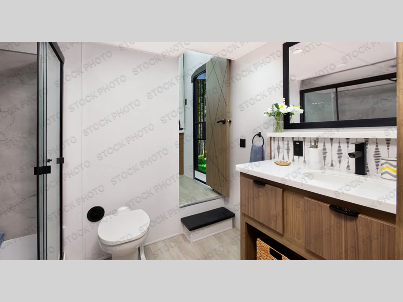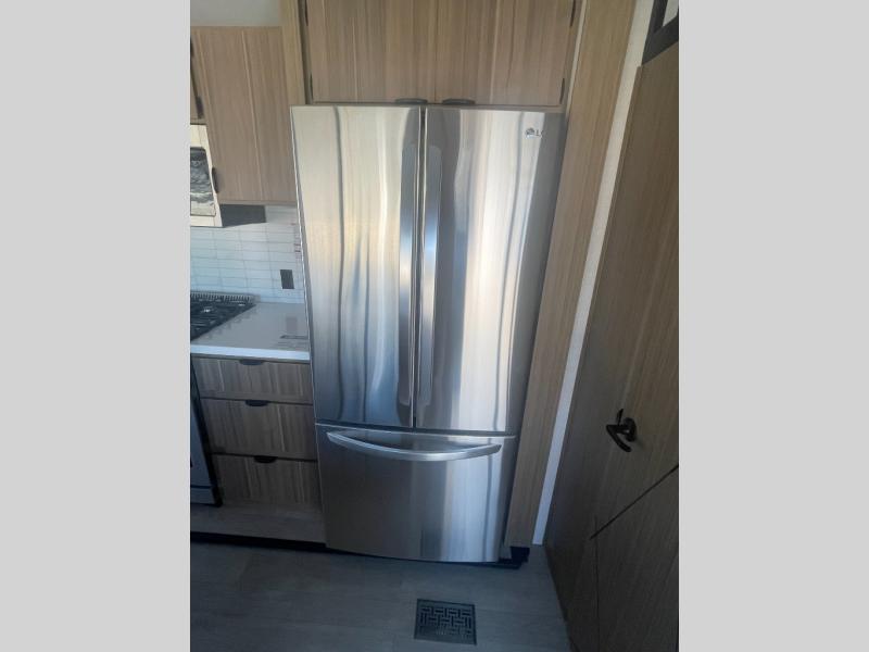 With any Wildwood Grand Lodge destination trailer by Forest River, you can enjoy extended stays wherever you go! There is 4K awning blade lighting outside, along with slide out awning toppers, plus a heated and enclosed Accessibelly for added protection. Inside, you'll love the stylish backsplash update, elegant curtain rods and curtains, TFL black walnut entertainment shelves, and stainless steel kitchen appliances. A Serta mattress in the bedroom(s) will provide comfort to each journey, and there is a tankless water heater for hot water when you need it.