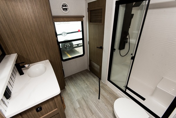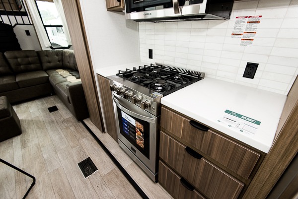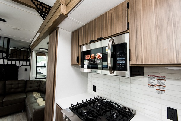 With any Wildwood Grand Lodge destination trailer by Forest River, you can enjoy extended stays wherever you go! There is 4K awning blade lighting outside, along with slide out awning toppers, plus a heated and enclosed Accessibelly for added protection. Inside, you'll love the stylish backsplash update, elegant curtain rods and curtains, TFL black walnut entertainment shelves, and stainless steel kitchen appliances. A Serta mattress in the bedroom(s) will provide comfort to each journey, and there is a tankless water heater for hot water when you need it.