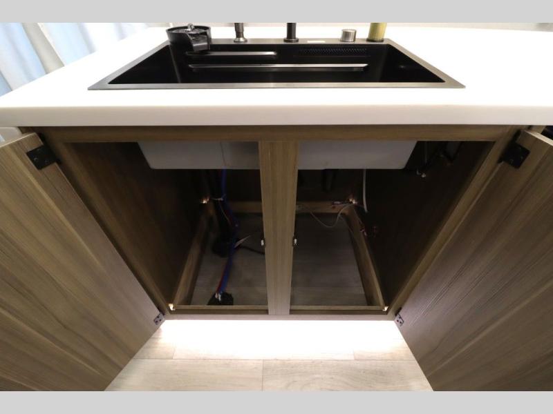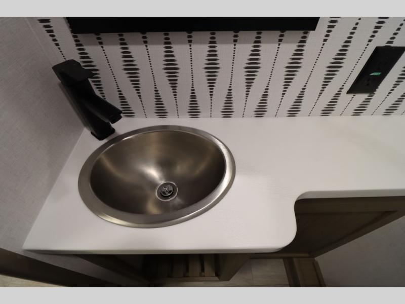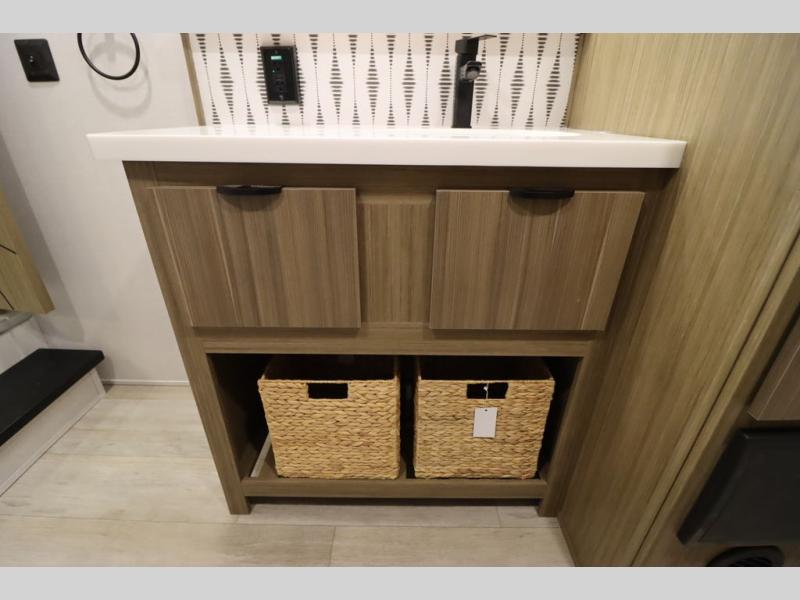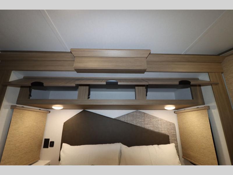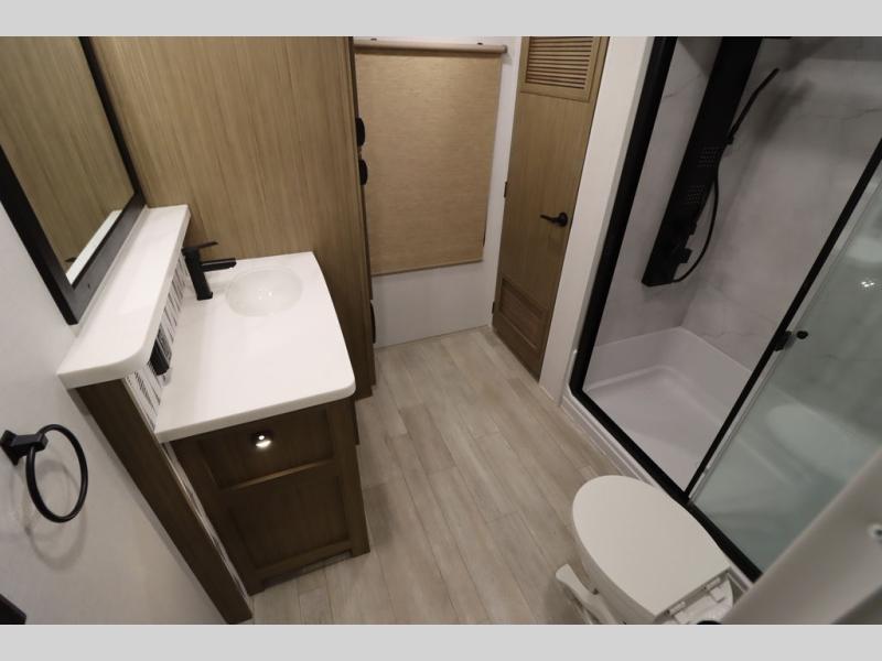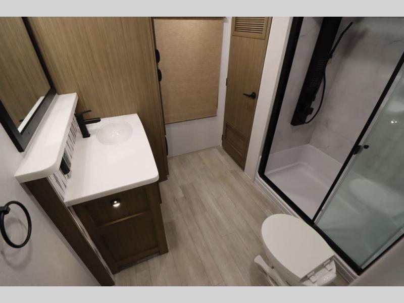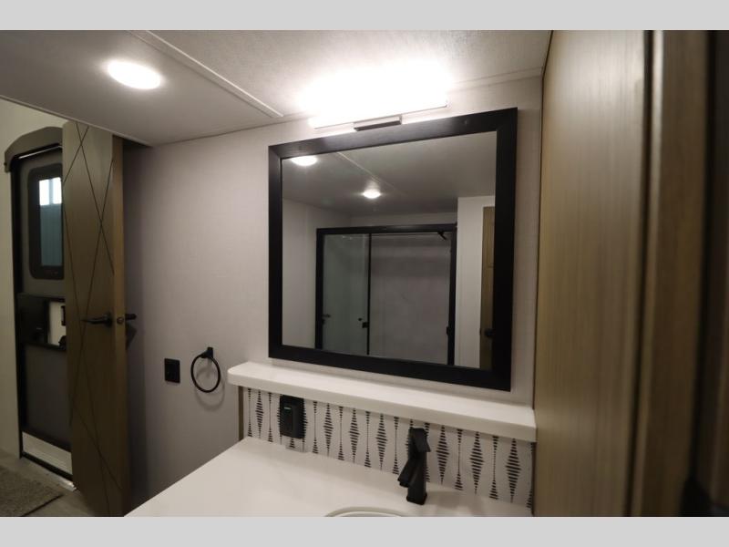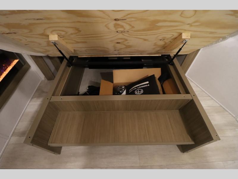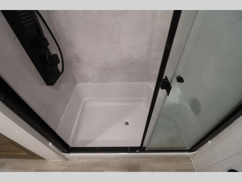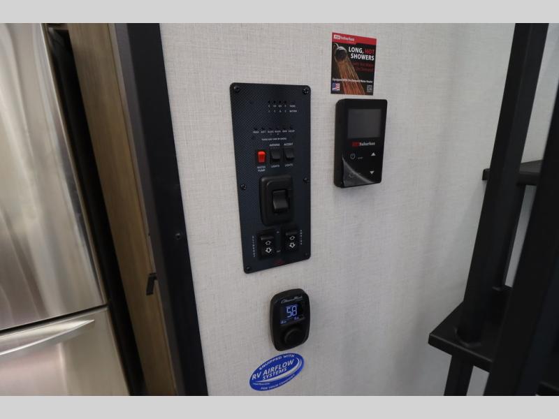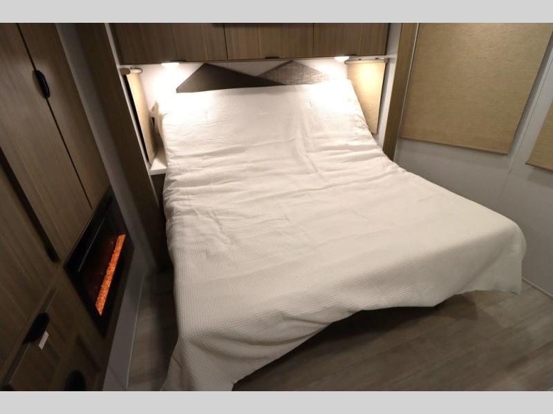 With any Wildwood Grand Lodge destination trailer by Forest River, you can enjoy extended stays wherever you go! There is 4K awning blade lighting outside, along with slide out awning toppers, plus a heated and enclosed Accessibelly for added protection. Inside, you'll love the stylish backsplash update, elegant curtain rods and curtains, TFL black walnut entertainment shelves, and stainless steel kitchen appliances. A Serta mattress in the bedroom(s) will provide comfort to each journey, and there is a tankless water heater for hot water when you need it.
