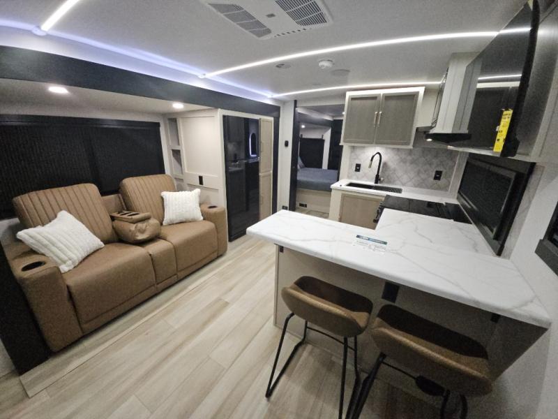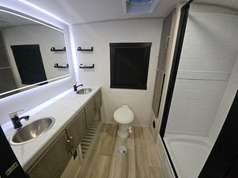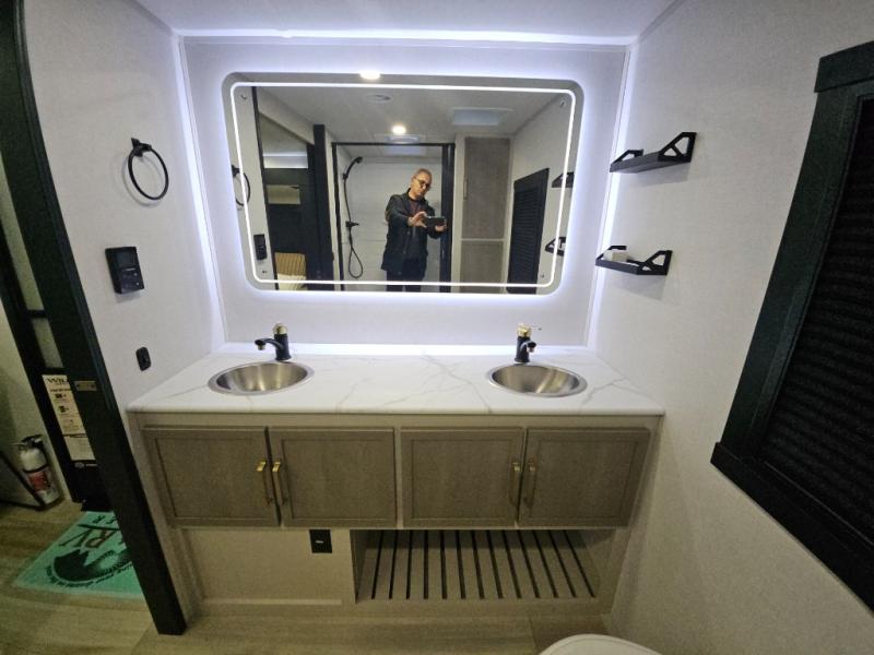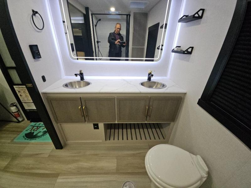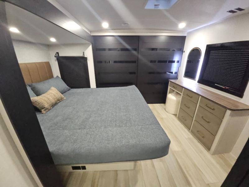 REAR BATH WITH DUAL VANITY / TWO SLIDEOUT/ KING BED/ THWATER SEATING / TWO AC / 200W SOLAR SYSTEM