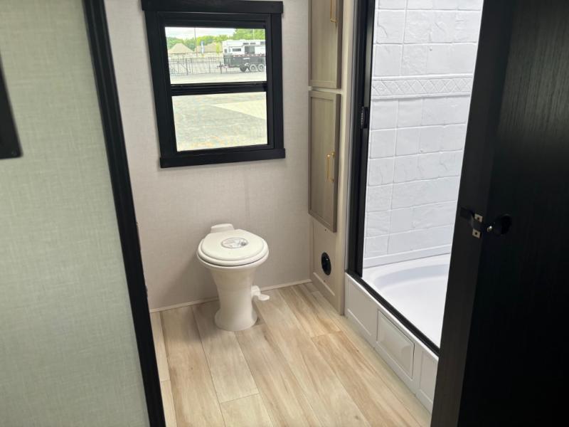 With any Wildwood Heritage Glen travel trailer by Forest River, the quality construction, attention to detail and design along with a bright and welcoming interior allows you to relax in comfort with conveniences while exploring outdoors. Each model includes a WeatherShield one piece fiberglass roof, Maxxis radial tires, and an enclosed underbelly with 12V tank heaters on all holding tanks for added protection. You will appreciate the on-demand tankless water heater, along with the 15K BTU Quite Cool A/C and 50 Amp service with a brace for a second A/C. There is an outside shower with hot and cold water, solar prep, a power tongue jack, plus many more exterior conveniences. Head inside to enjoy matte gold hardware, wood door casings in place of plastic door casings, and full length barreled ceilings for additional head room.