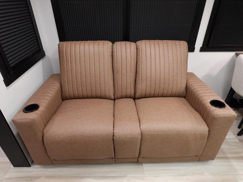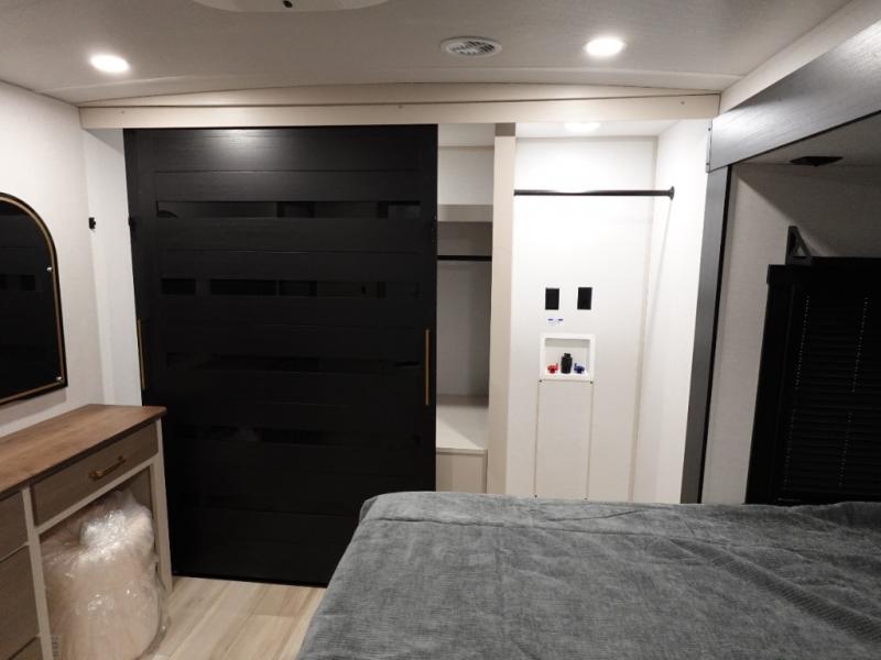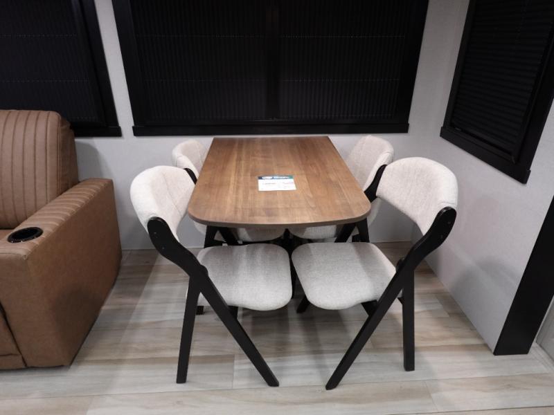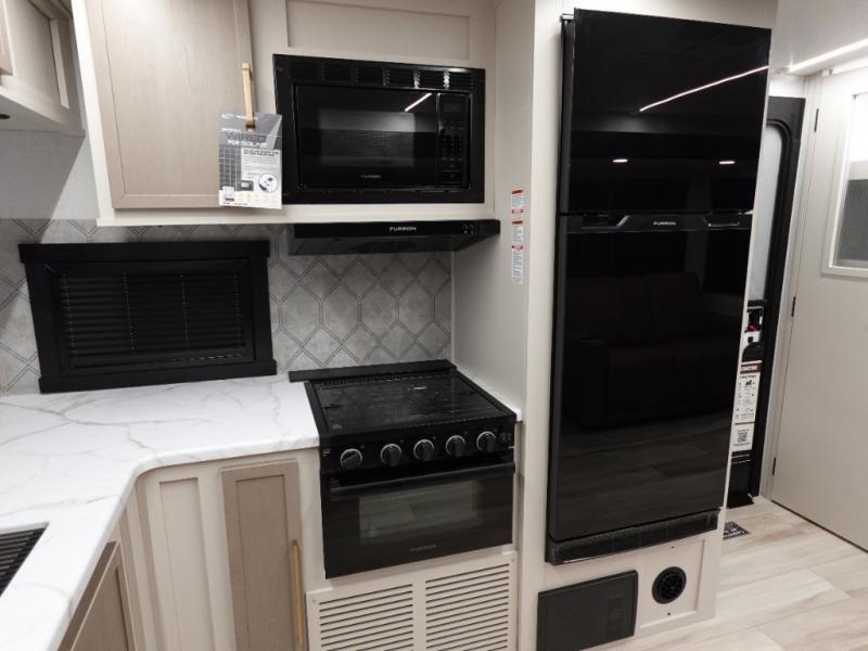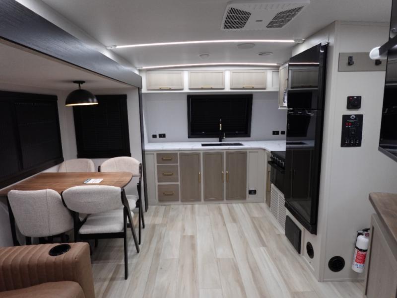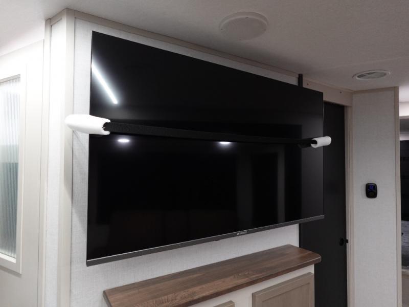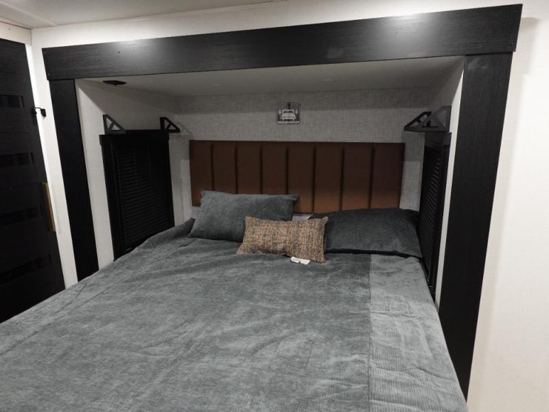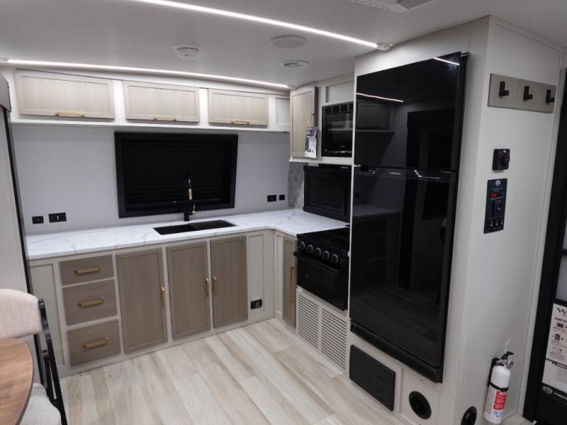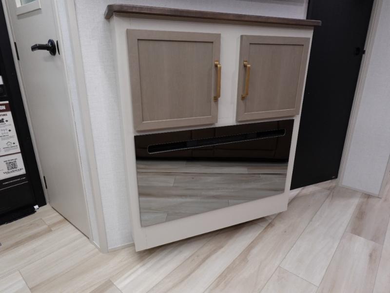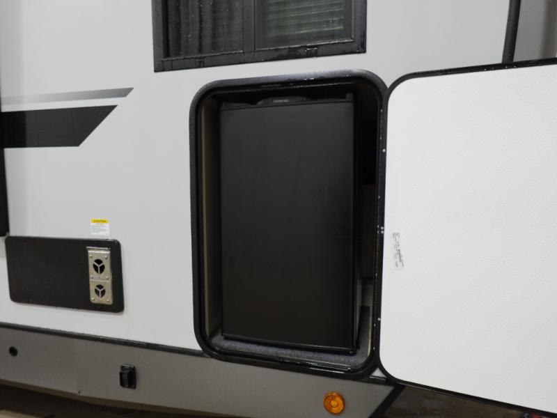 Your family and friends will enjoy each camping trip in this feature-packed Wildwood Heritage Glen travel trailer. Once you arrive at the lake, put out the 19' awning with LED lights before preparing lunch on the outside kitchen. The kids can grab the yard games out of the exterior storage compartments before stretching their legs around the campground. Your crew can get comfortable on the theater seating or the booth dinette, and the 50" LED TV and fireplace will make it feel more like home. The chef of the family will love the extra counter space in the front kitchen as well as a pantry to store dry goods and a 10 cu. ft. 12V refrigerator to keep the gang fed all week. The dual-entry bath will create a rear master suite that you are sure to love. Easily store all your clothes in the large wardrobe or in the dresser, and then fall back on the 66" x 80" custom king bed. You even have your own exterior entry door for convenience and washer/dryer prep!