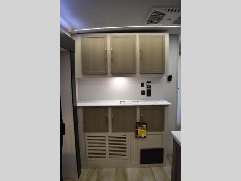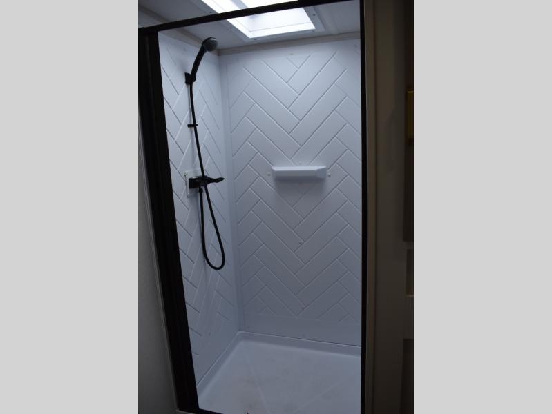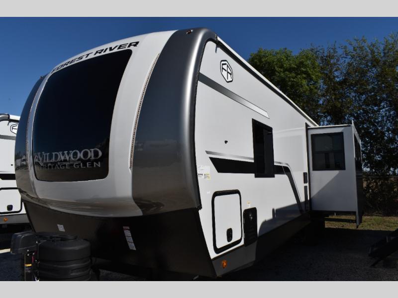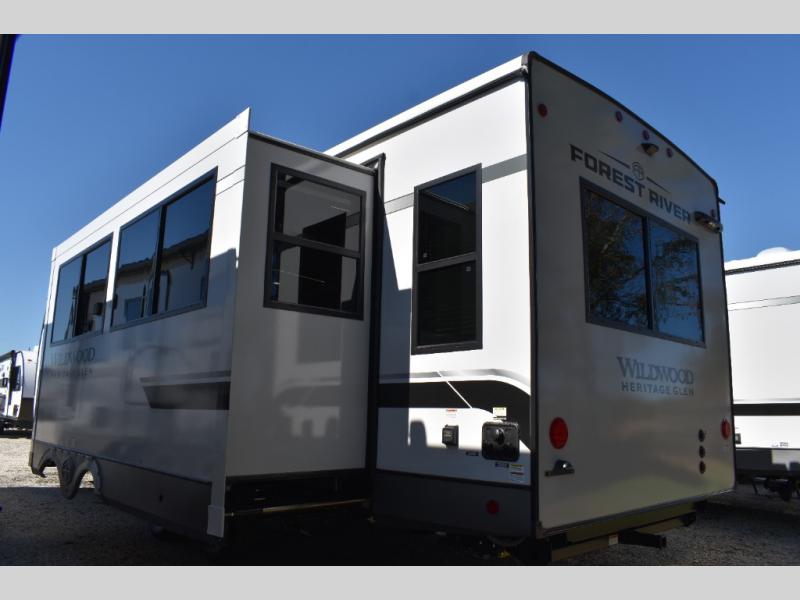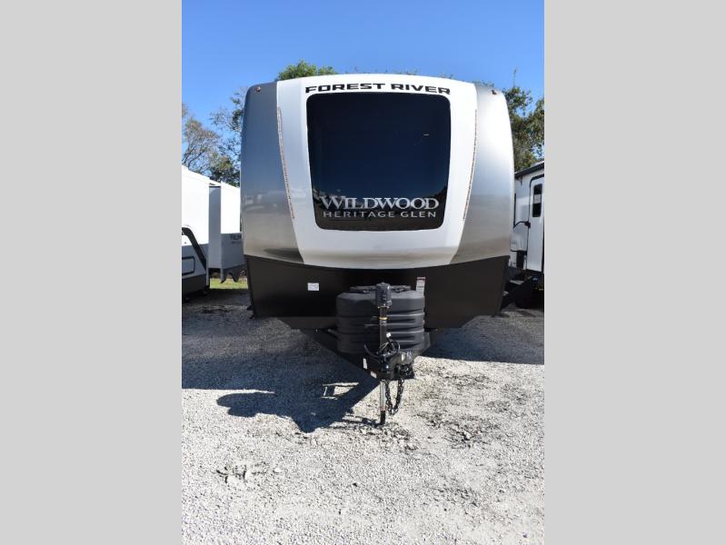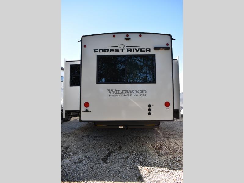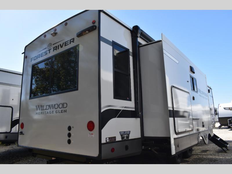 With any Wildwood Heritage Glen travel trailer by Forest River, the quality construction, attention to detail and design along with a bright and welcoming interior allows you to relax in comfort with conveniences while exploring outdoors. Each model includes a WeatherShield one piece fiberglass roof, Maxxis radial tires, and an enclosed underbelly with 12V tank heaters on all holding tanks for added protection. You will appreciate the on-demand tankless water heater, along with the 15K BTU Quite Cool A/C and 50 Amp service with a brace for a second A/C. There is an outside shower with hot and cold water, solar prep, a power tongue jack, plus many more exterior conveniences. Head inside to enjoy matte gold hardware, wood door casings in place of plastic door casings, and full length barreled ceilings for additional head room.
