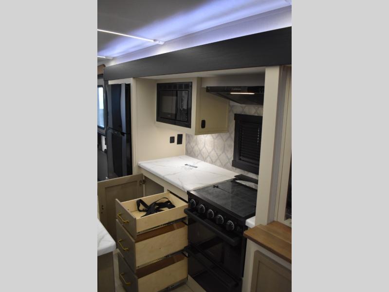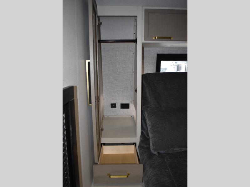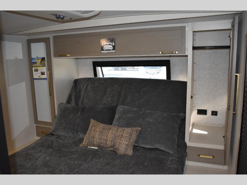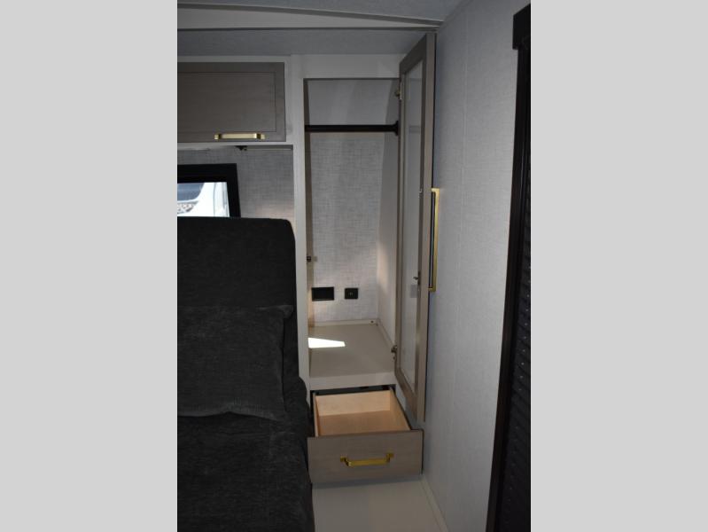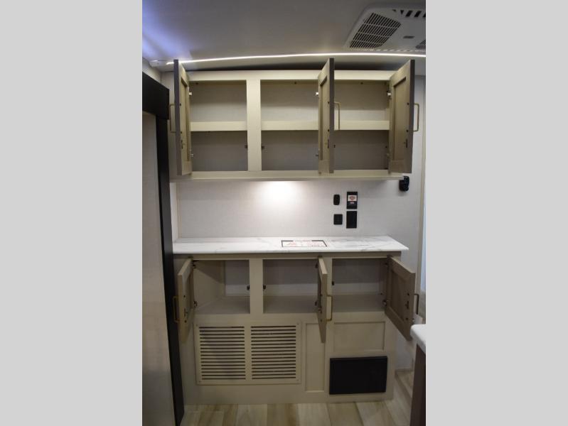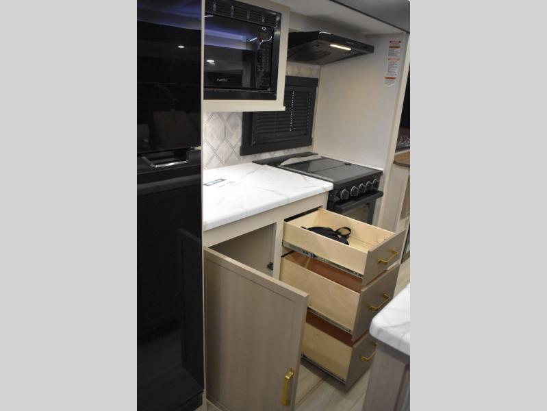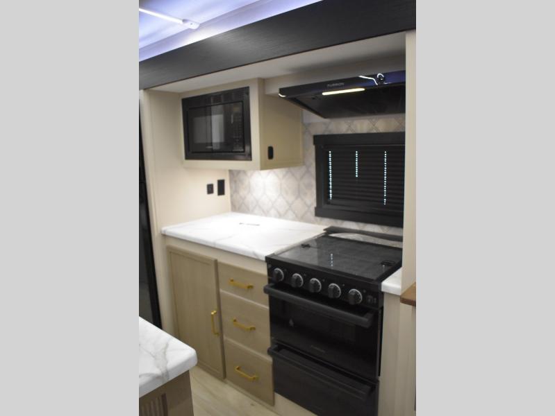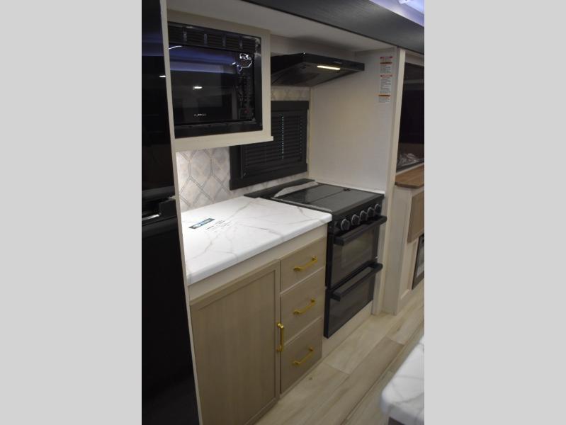 With any Wildwood Heritage Glen travel trailer by Forest River, the quality construction, attention to detail and design along with a bright and welcoming interior allows you to relax in comfort with conveniences while exploring outdoors. Each model includes a WeatherShield one piece fiberglass roof, Maxxis radial tires, and an enclosed underbelly with 12V tank heaters on all holding tanks for added protection. You will appreciate the on-demand tankless water heater, along with the 15K BTU Quite Cool A/C and 50 Amp service with a brace for a second A/C. There is an outside shower with hot and cold water, solar prep, a power tongue jack, plus many more exterior conveniences. Head inside to enjoy matte gold hardware, wood door casings in place of plastic door casings, and full length barreled ceilings for additional head room.