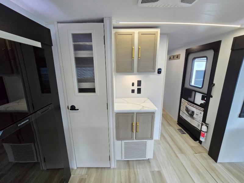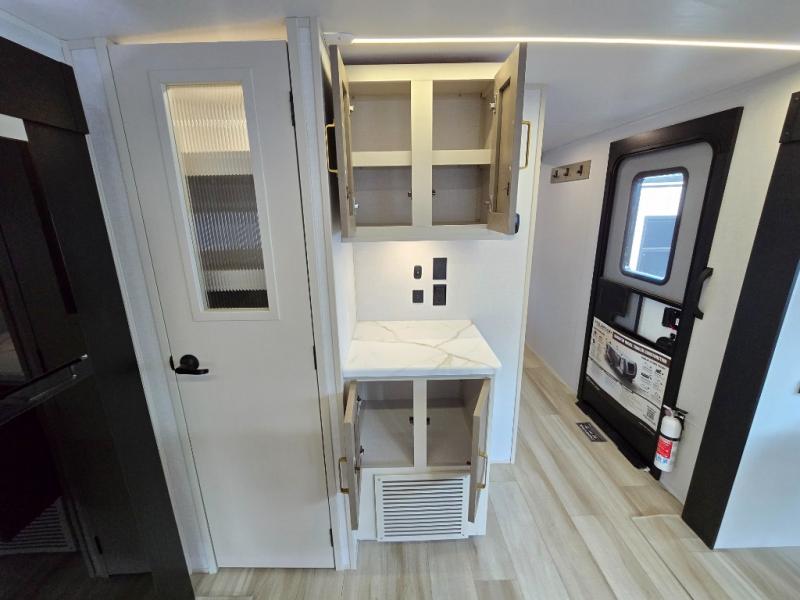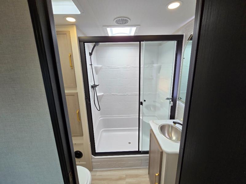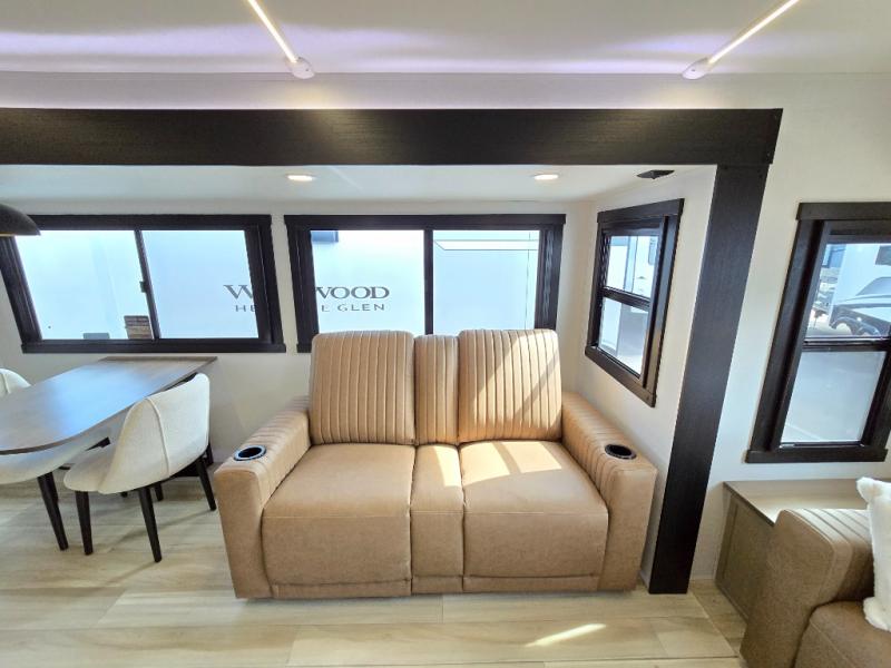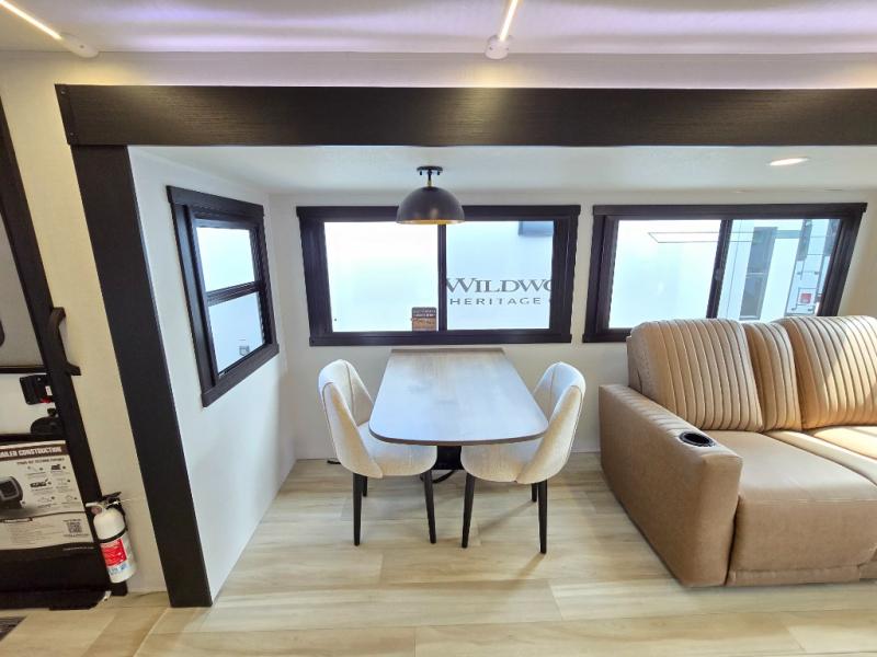 With any Wildwood Heritage Glen travel trailer by Forest River, the quality construction, attention to detail and design along with a bright and welcoming interior allows you to relax in comfort with conveniences while exploring outdoors. Each model includes a WeatherShield one piece fiberglass roof, Maxxis radial tires, and an enclosed underbelly with 12V tank heaters on all holding tanks for added protection. You will appreciate the on-demand tankless water heater, along with the 15K BTU Quite Cool A/C and 50 Amp service with a brace for a second A/C. There is an outside shower with hot and cold water, solar prep, a power stabilizer and tongue jack, plus many more exterior conveniences. Head inside to enjoy matte gold hardware, wood door casings in place of plastic door casings, and full length barreled ceilings for additional head room.