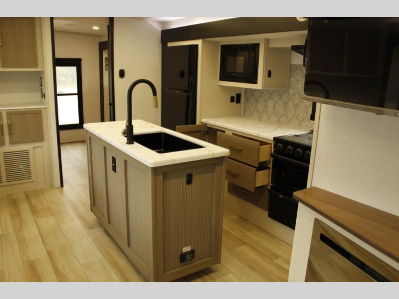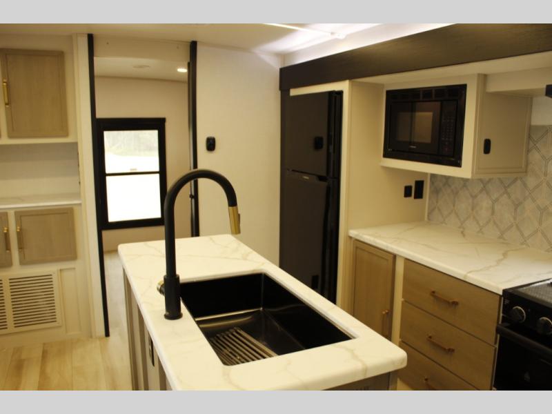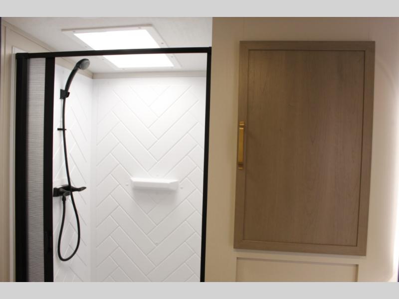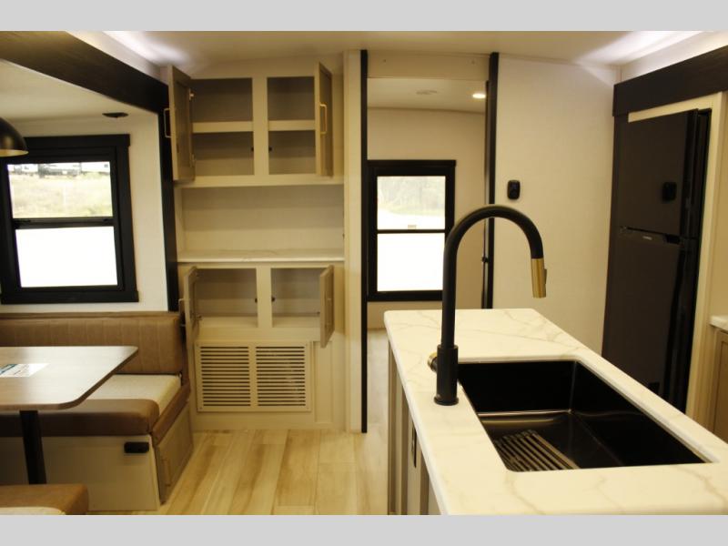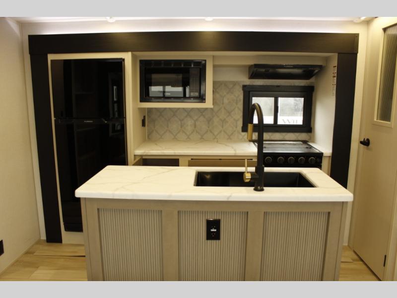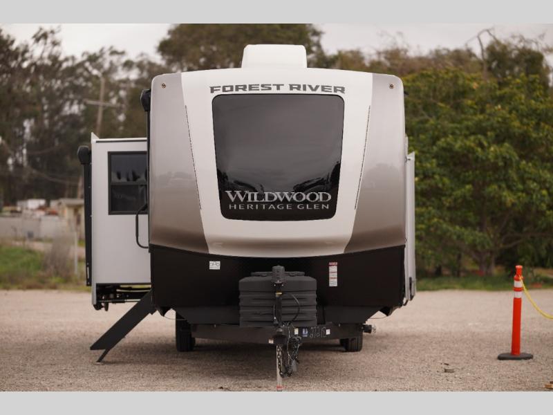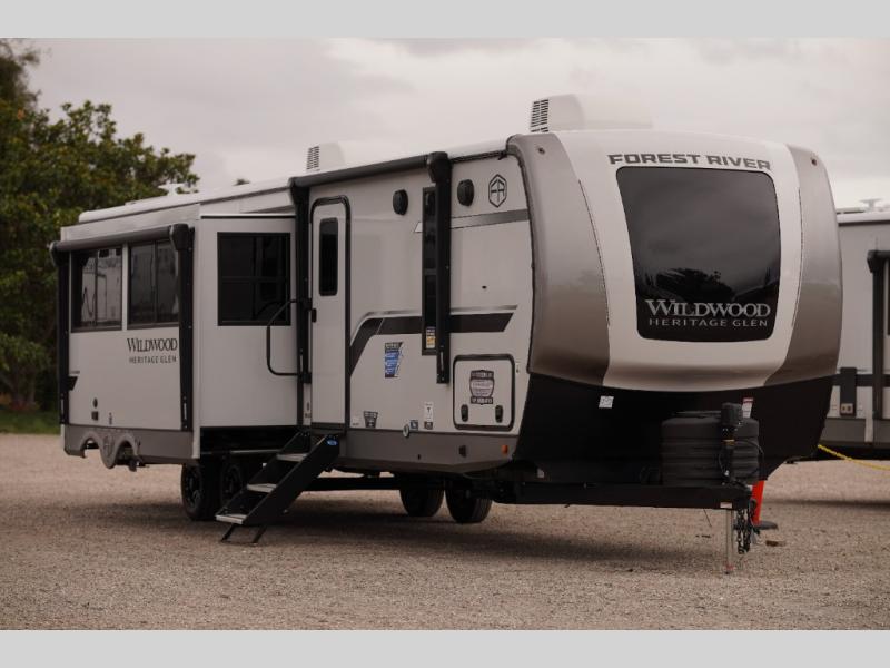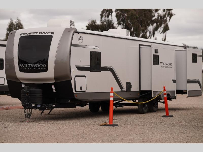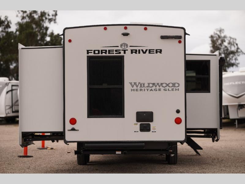 With any Wildwood Heritage Glen travel trailer by Forest River, the quality construction, attention to detail and design along with a bright and welcoming interior allows you to relax in comfort with conveniences while exploring outdoors. Each model includes a WeatherShield one piece fiberglass roof, Maxxis radial tires, and an enclosed underbelly with 12V tank heaters on all holding tanks for added protection. You will appreciate the on-demand tankless water heater, along with the 15K BTU Quite Cool A/C and 50 Amp service with a brace for a second A/C. There is an outside shower with hot and cold water, solar prep, a power stabilizer and tongue jack, plus many more exterior conveniences. Head inside to enjoy matte gold hardware, wood door casings in place of plastic door casings, and full length barreled ceilings for additional head room.