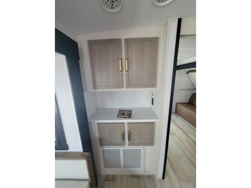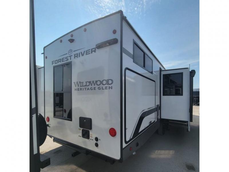 With any Wildwood Heritage Glen travel trailer by Forest River, the quality construction, attention to detail and design along with a bright and welcoming interior allows you to relax in comfort with conveniences while exploring outdoors. Each model includes a WeatherShield one piece fiberglass roof, Maxxis radial tires, and an enclosed underbelly with 12V tank heaters on all holding tanks for added protection. You will appreciate the on-demand tankless water heater, along with the 15K BTU Quite Cool A/C and 50 Amp service with a brace for a second A/C. There is an outside shower with hot and cold water, solar prep, a power tongue jack, plus many more exterior conveniences. Head inside to enjoy matte gold hardware, wood door casings in place of plastic door casings, and full length barreled ceilings for additional head room.