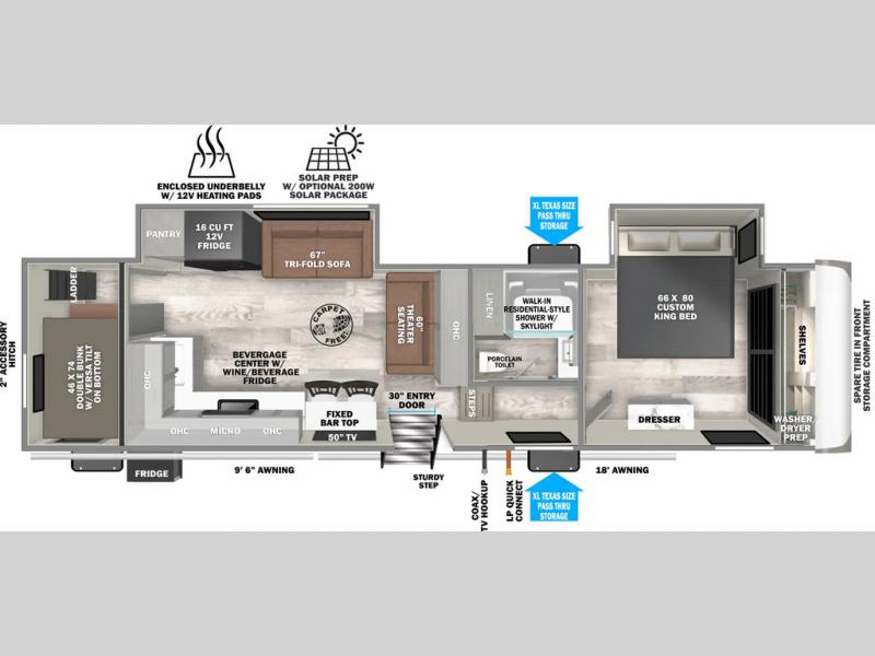 | Awning Info | 9' 6" and 18' Electric with LED Lights |