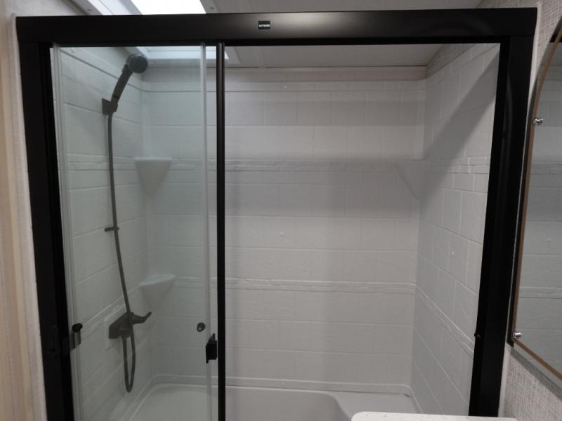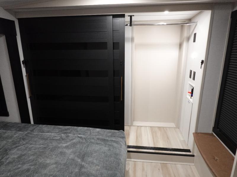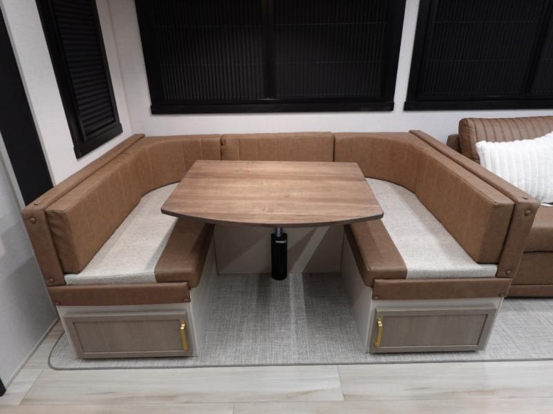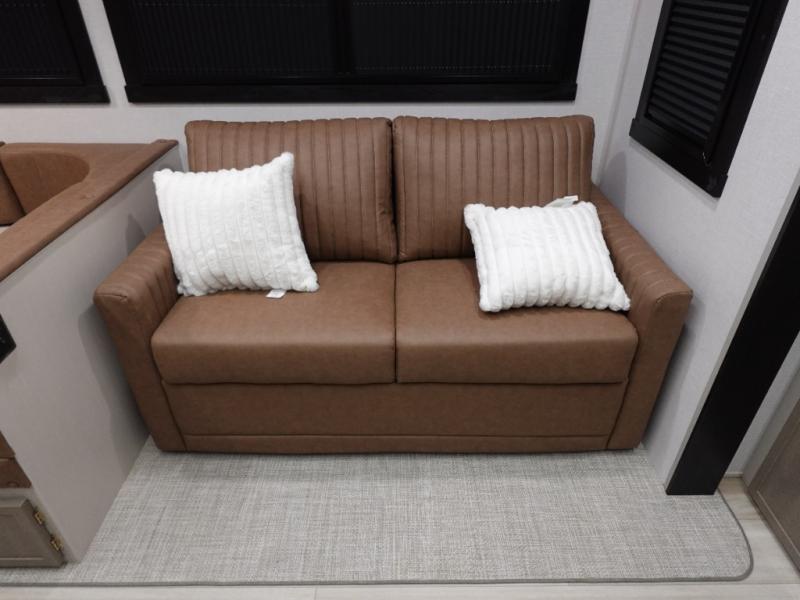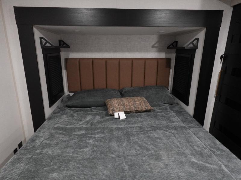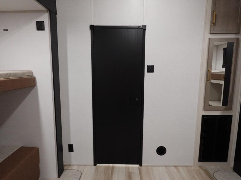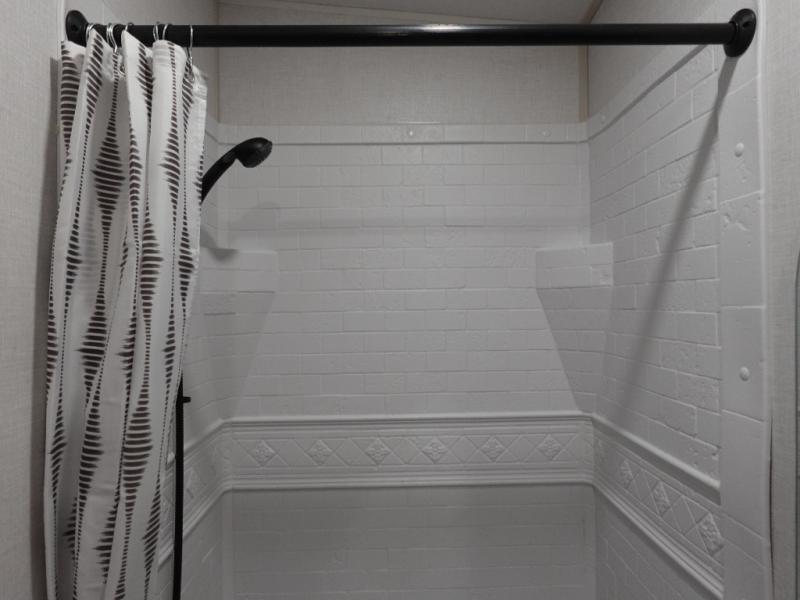 Not all fifth wheels are alike, and once you own this Wildwood Heritage Glen, you will understand! The rear entry into the second full bathroom allows the kids or your friends to enter and exit quickly to get back outside to the fun. They will also be able to shower and then enter their private bunkhouse that has two bunks, a convertible sofa bed, and two slides that offer lots of floor space to play. You will have your own oasis on the opposite side in the front private bedroom that has a custom king bed, a full-width wardrobe, and washer and dryer prep. The other full bathroom is only steps away from the main entrance and living area. The inside kitchen offers even more amenities, and the fourth slide provides a family U-shaped dinette and tri-fold sofa.